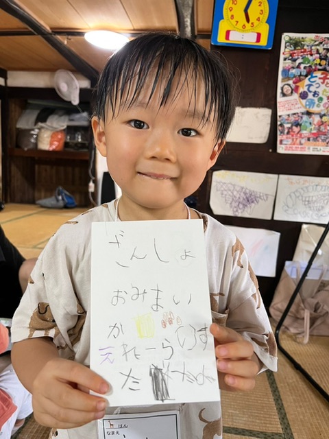 夏のちびっ子キャンプメンバーは、工作でご家族宛の残暑見舞いを作りました!