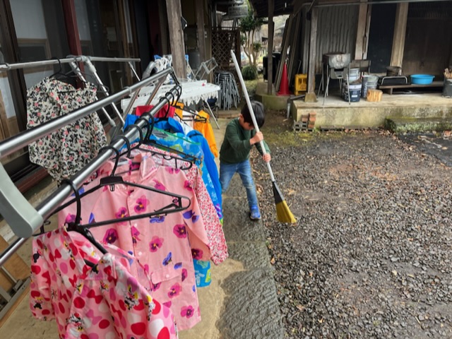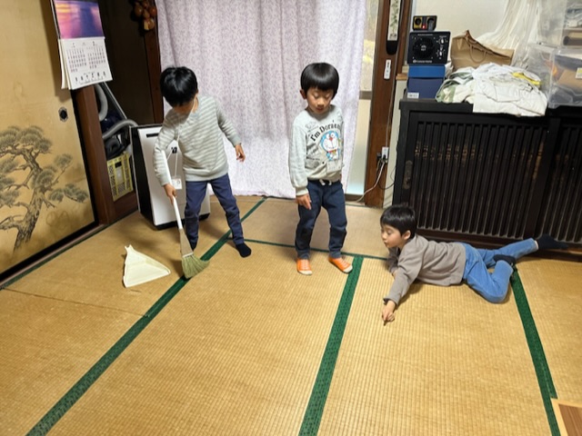 ちびっ子キャンプメンバーは、2日間過ごした古民家をみんなで大掃除!