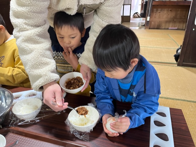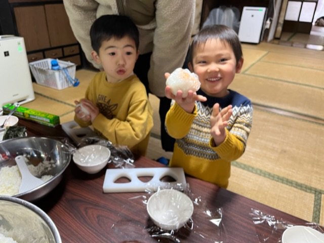 自分たちでおにぎりを握って食べます!おいしくできるかな…?