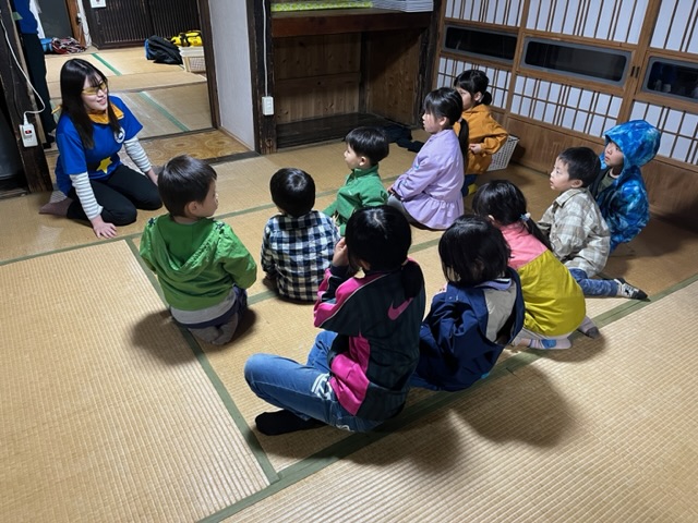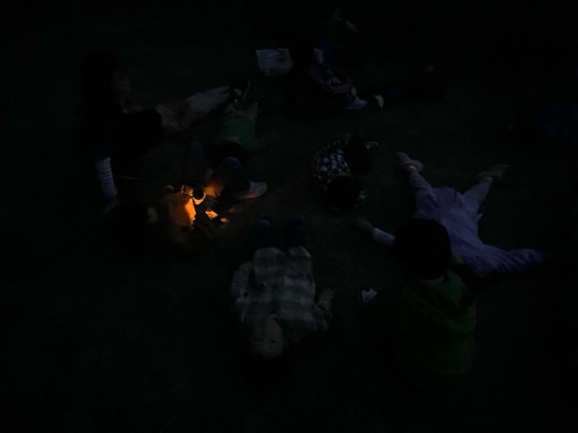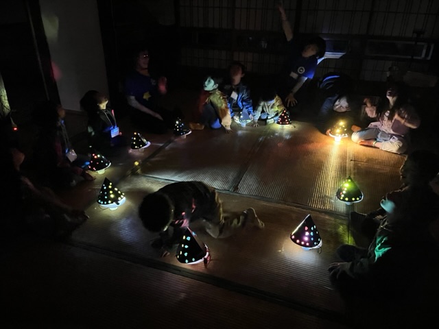 あばれん星から来たリーダーと一緒に耳や鼻を使う調査をしながら、夜の探検を楽しみました。