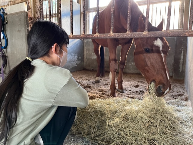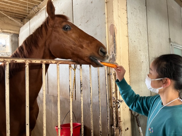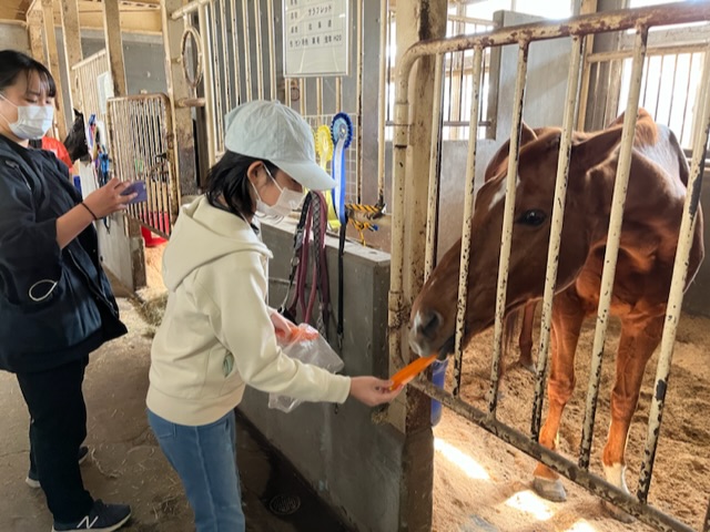 はじめは緊張した様子でしたが、すぐに慣れて馬とコミュニケーションをとっていました。