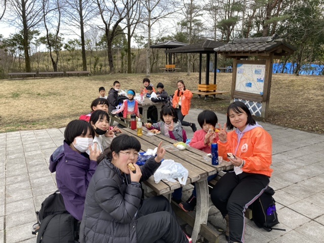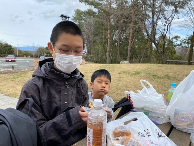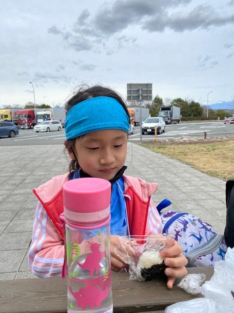 スキー教室メンバーは、高速道路渋滞のため甘楽PAで早めにお弁当を食べました。