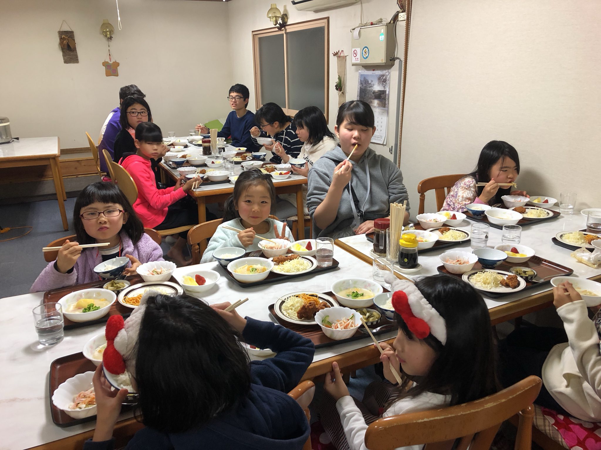 スキーメンバーは入浴、自由時間を過ごし夕飯タイム^ ^
