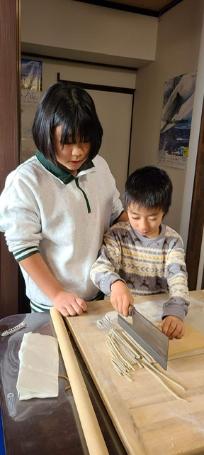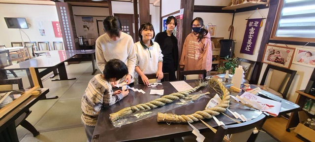 スキースノボ教室11泊コースメンバーは、しめ縄作りと年越しそば作りに挑戦中…!