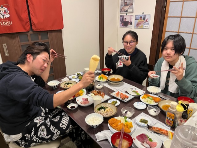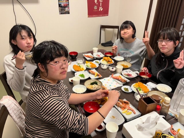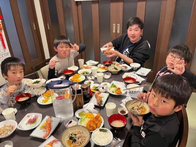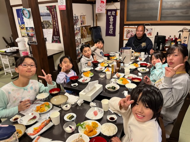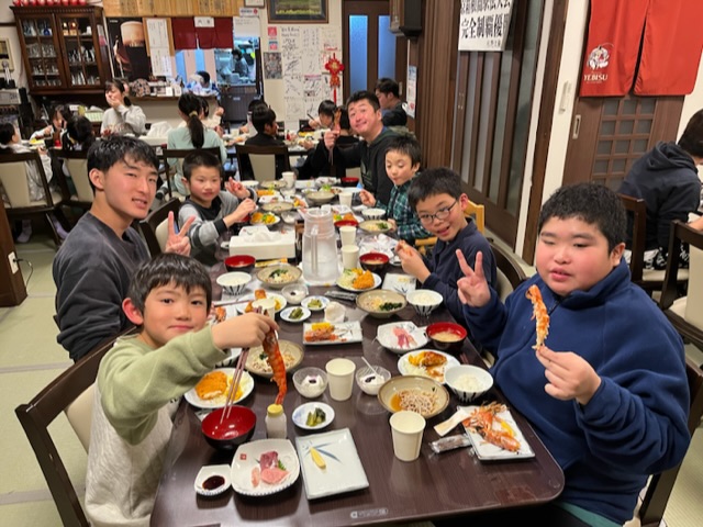 スキースノボ教室メンバーは、午後のフリー滑走を終え宿で夕食をいただきました。