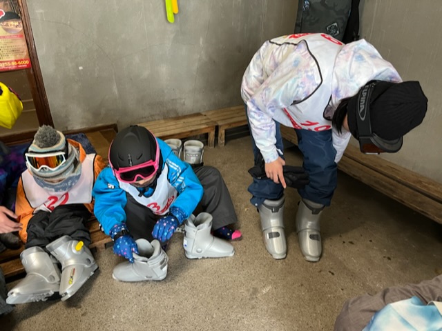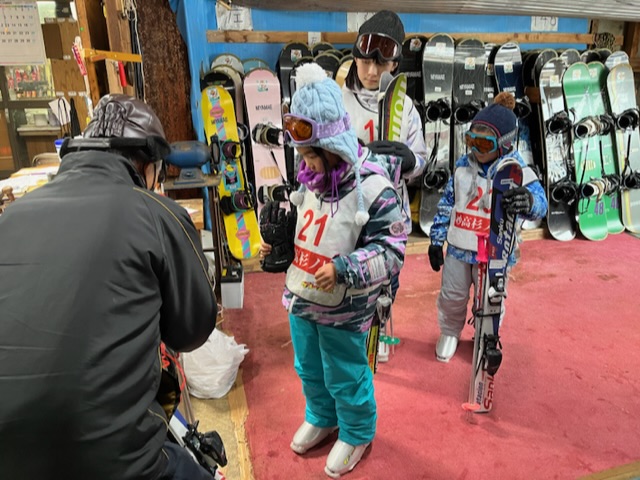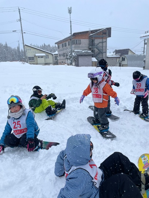 スキースノーボード教室メンバーは、スムーズに板合わせを終え、雪遊びを楽しみました。