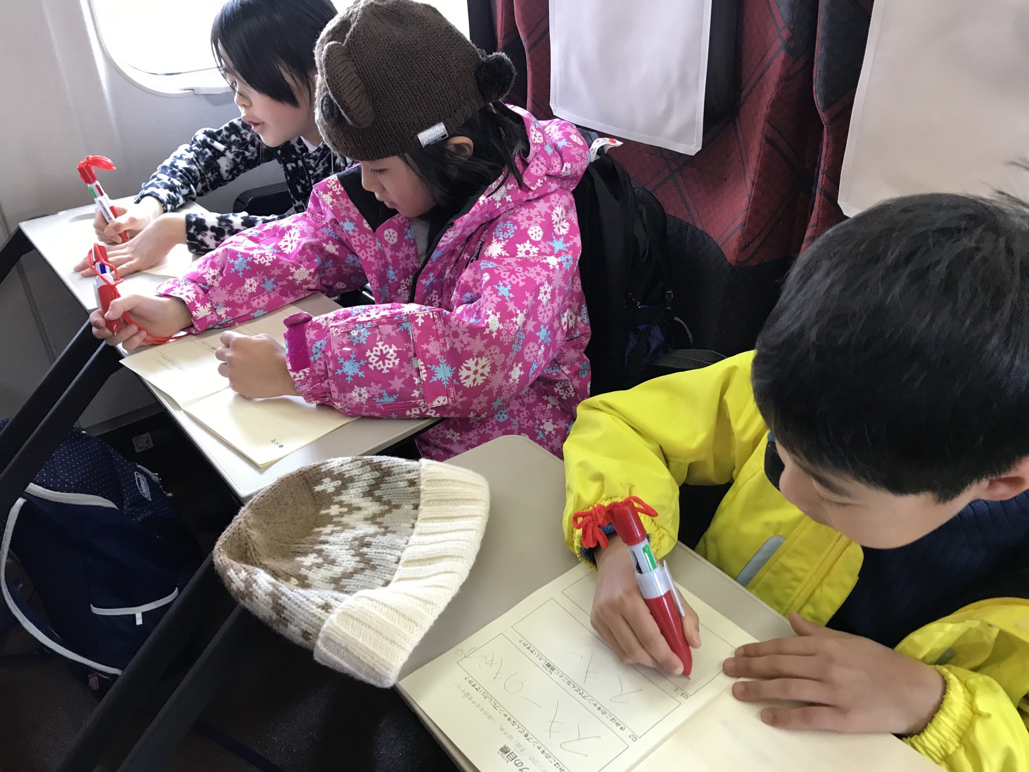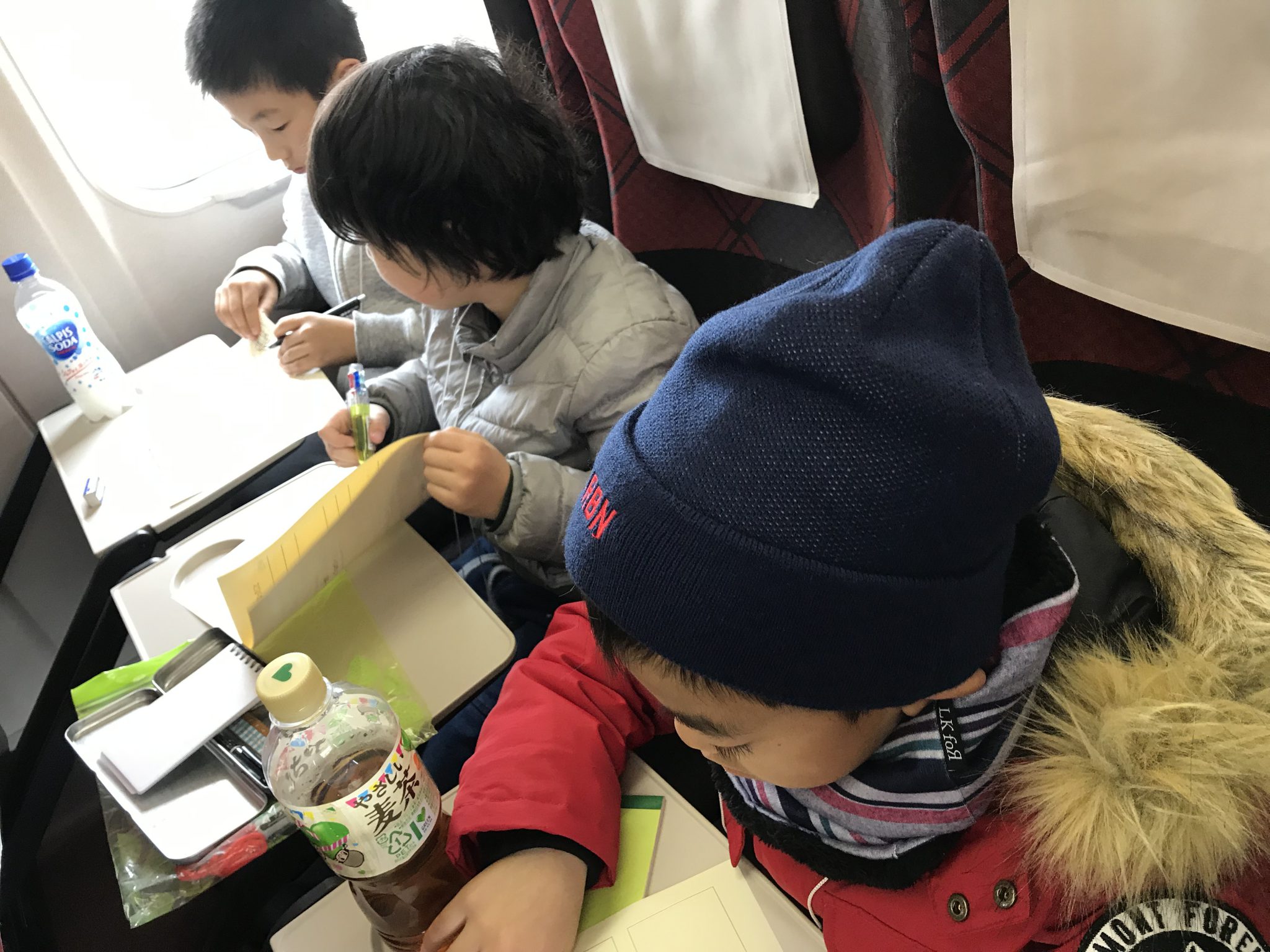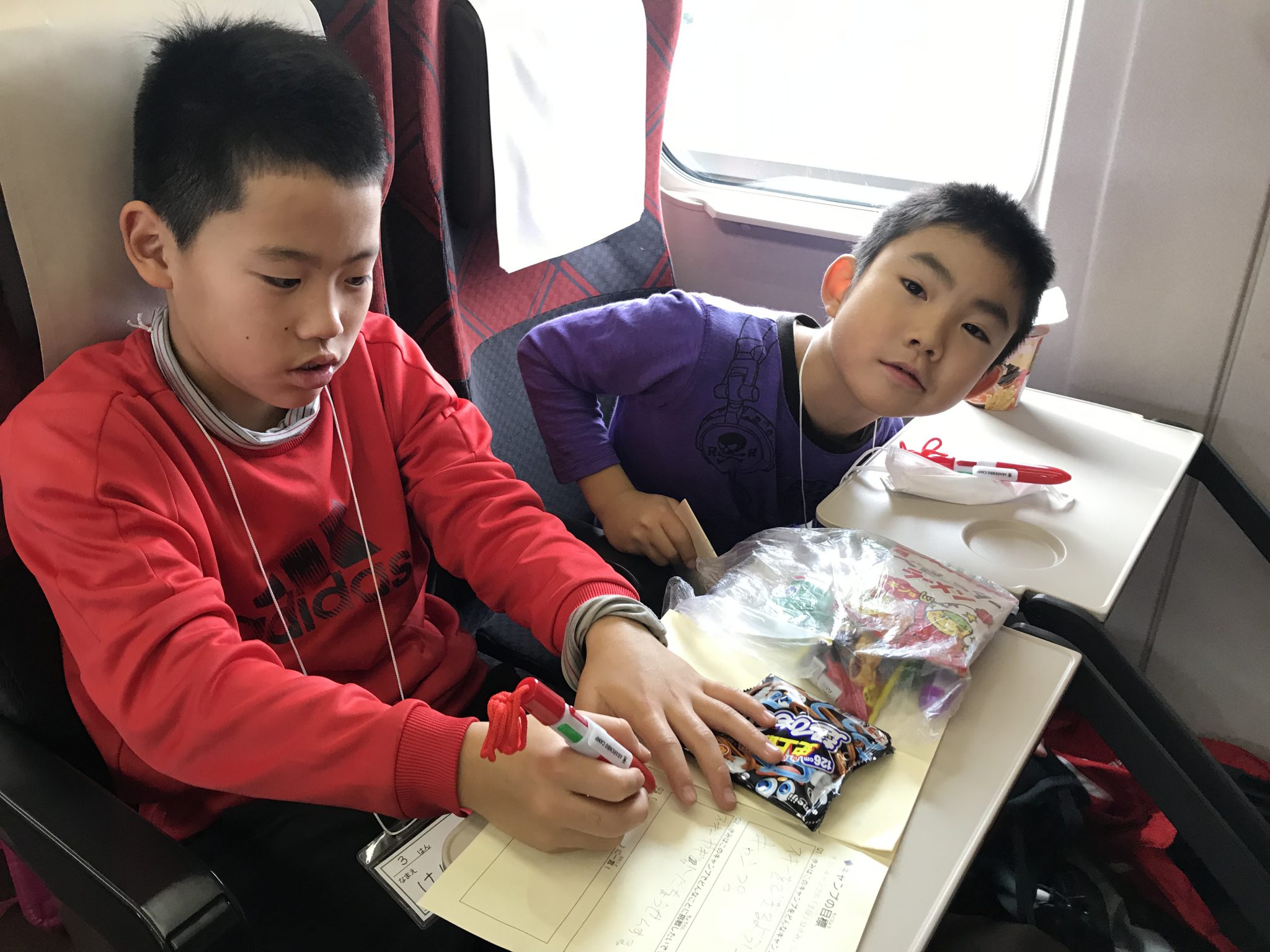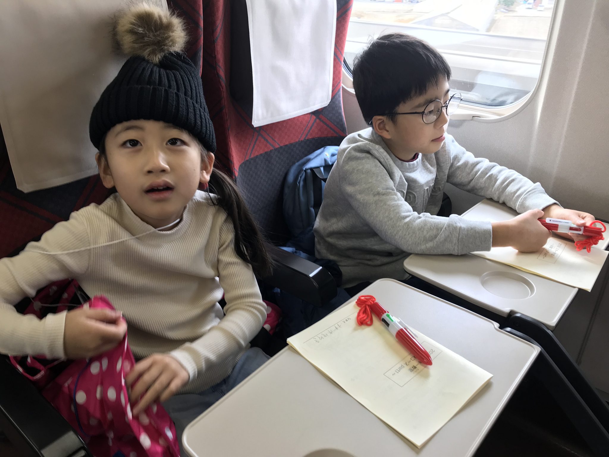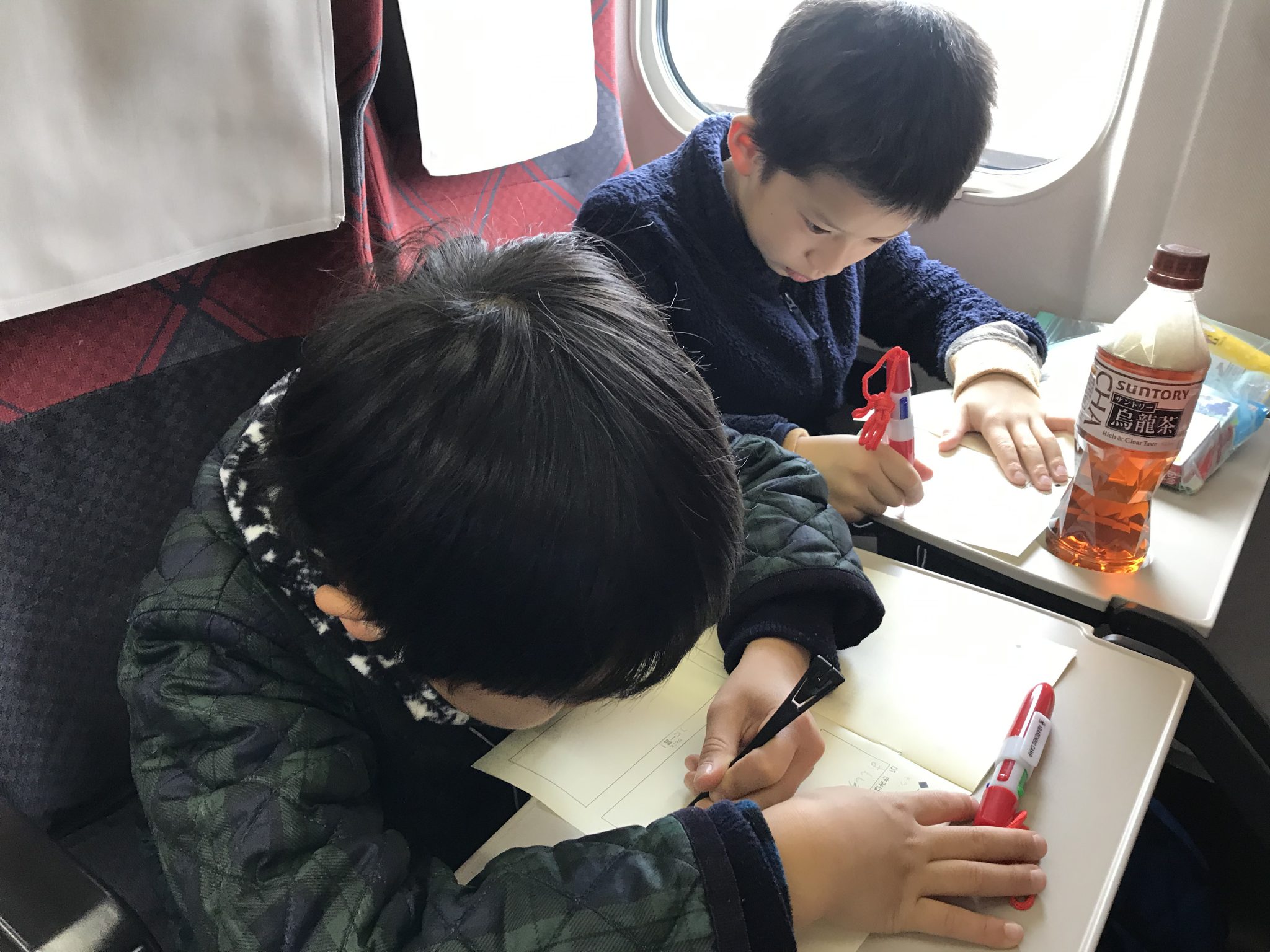 体験コースは新幹線に乗車しました。 朝早かったのでお腹が空いたようで、おやつタイムにしています。