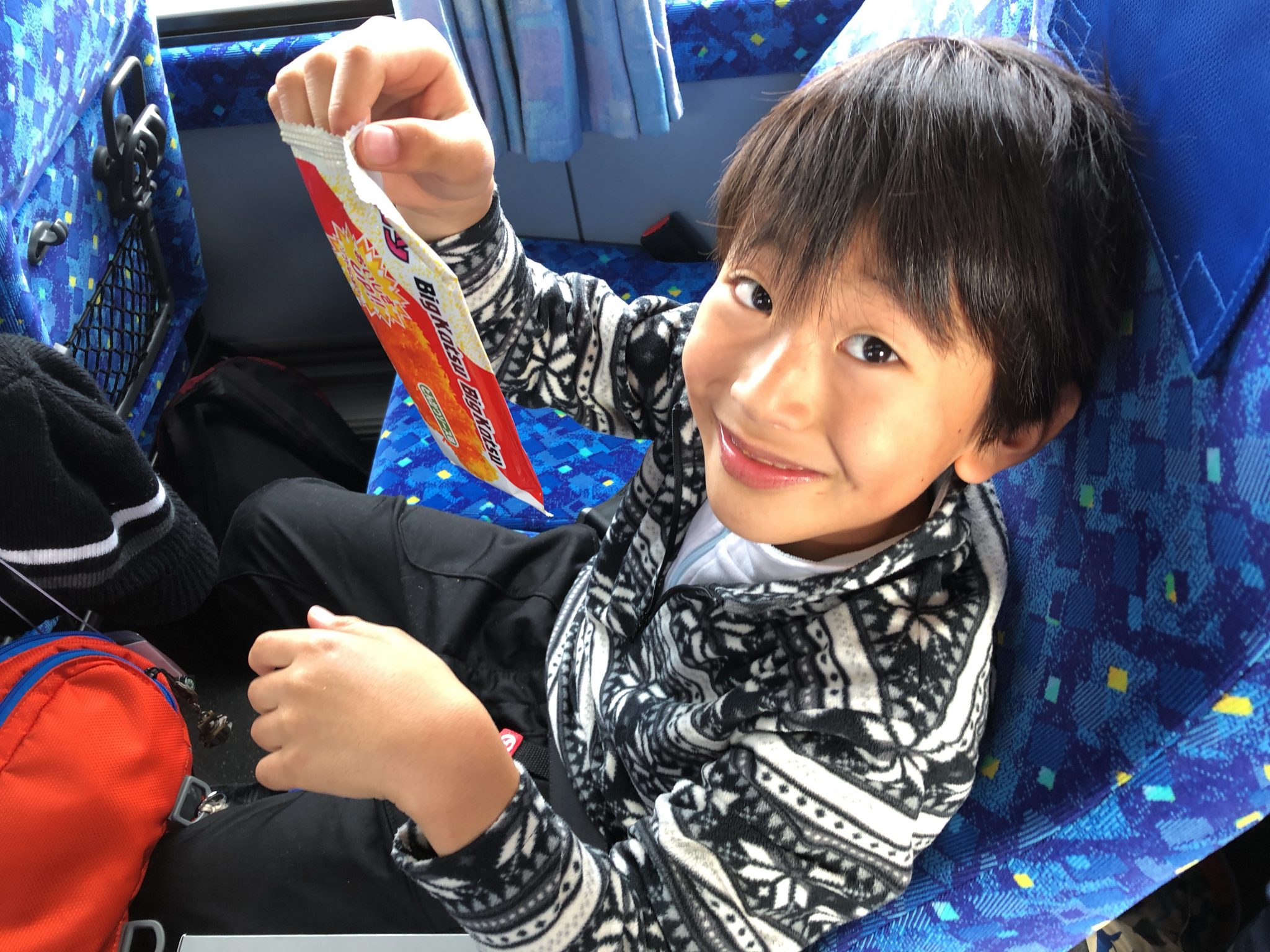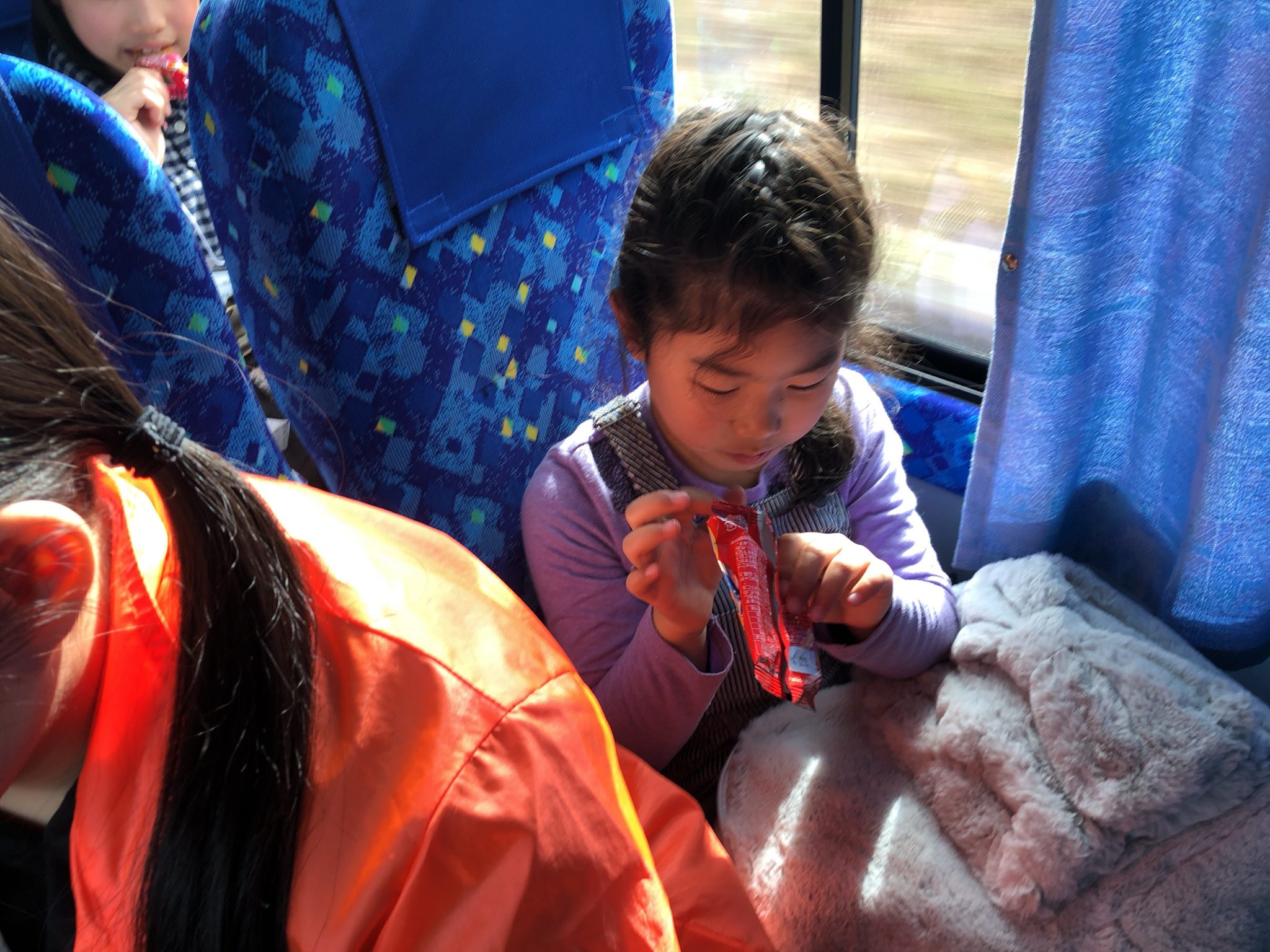 バスの中ではレクやおやつを食べて過ごしています^ ^