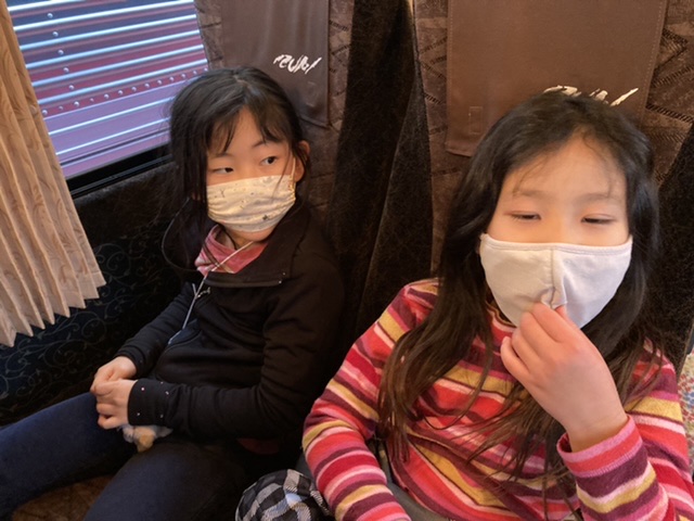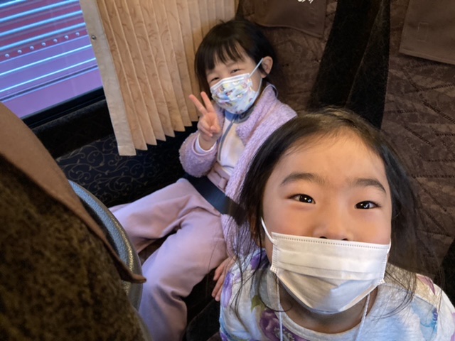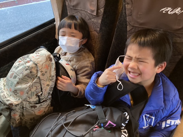 スキー教室&冬ちびメンバーを乗せたバスは現在狭山付近を通過中です。