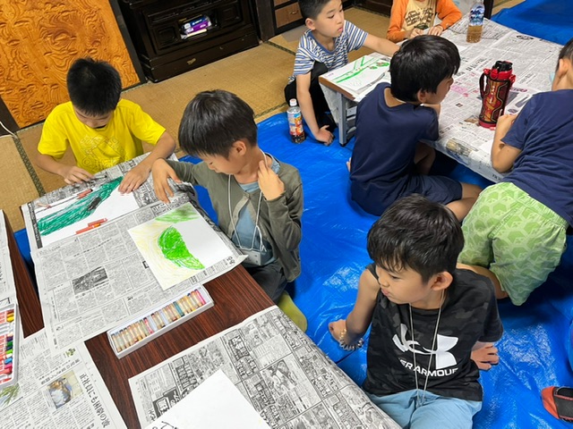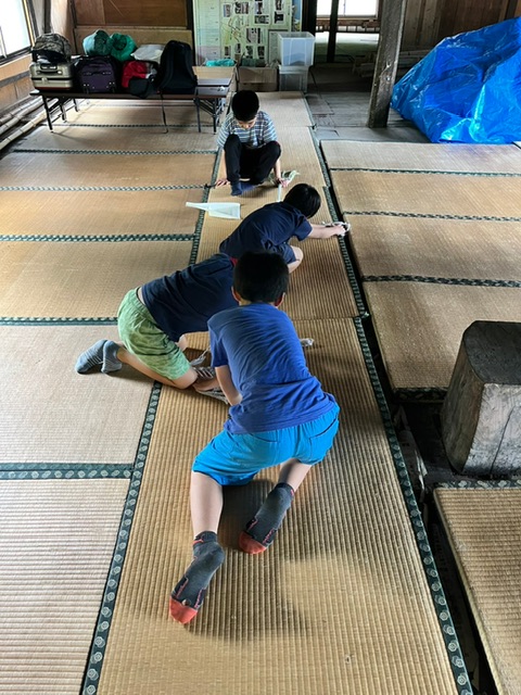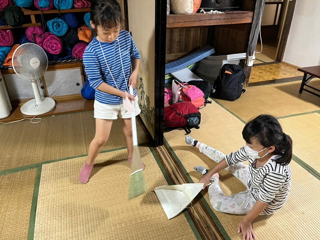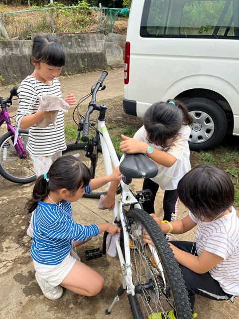 朝食を食べ終えた1クールメンバーは、MTBと古民家掃除、キャンプの思い出工作と大忙し…!