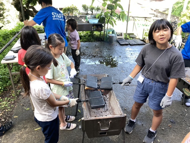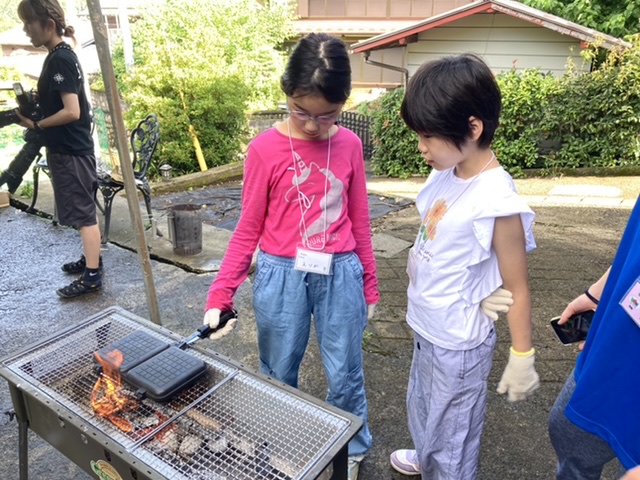 今日の朝ごはんは自分たちでホットサンドを作りました。
