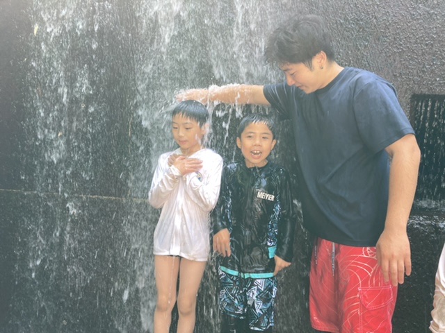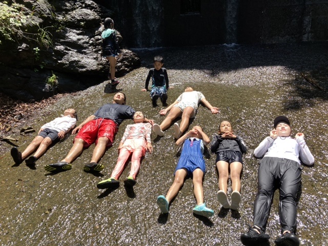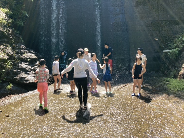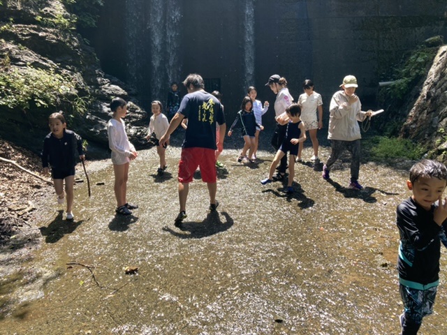 滝行や葉っぱレース、生き物探しをして遊びました。