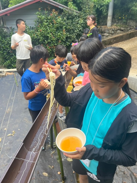 チャレンジ2クールメンバーは、お昼に流しそうめんをしました。