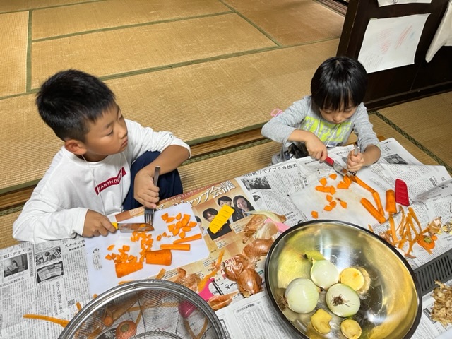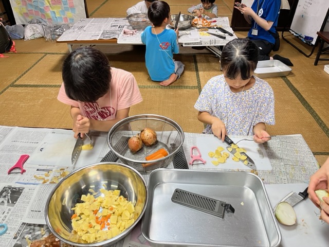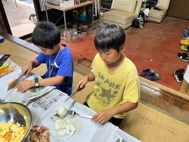 1クールから参加している子どもたちを中心に、火の付け方や野菜の切り方を伝授してもらいスピーディーに失敗なく調理できました。