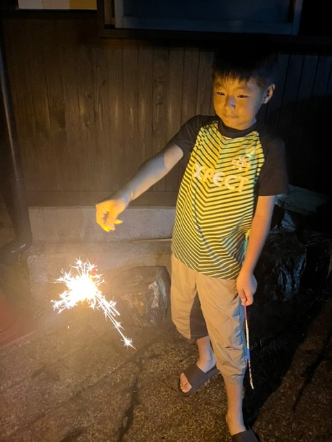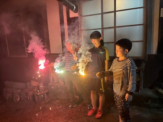 夕食のあとは、今日の頑張りのご褒美としてみんなで花火を☆