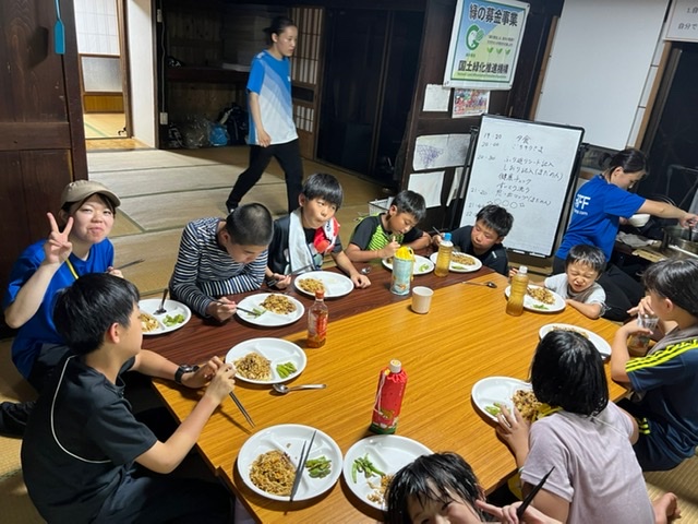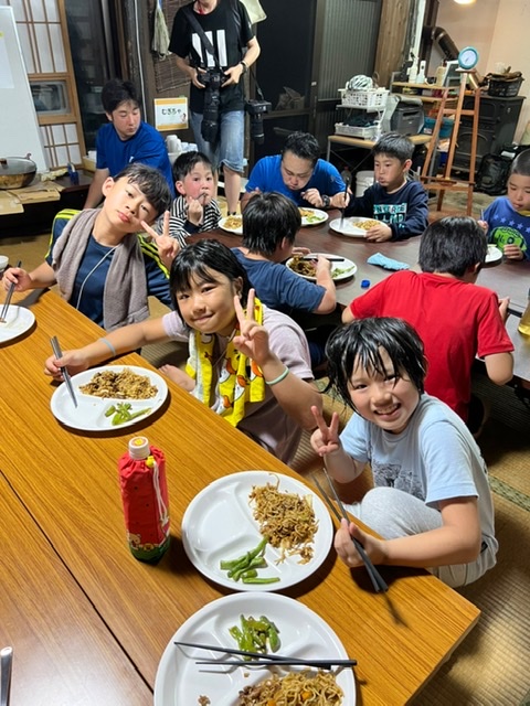 チャレンジ2クールメンバーは無事に古民家に戻り夕食を食べました。