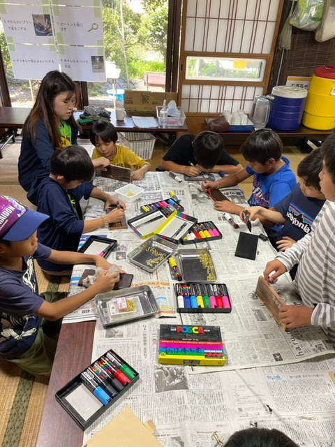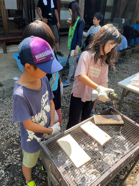 チャレンジ2クールメンバーは、キャンプの思い出作品として焼き板を製作^ ^