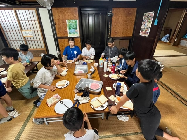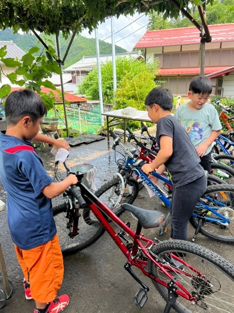 朝ごはんにホットサンドを作り、その後はキャンプで使ったマウンテンバイクの掃除や古民家の掃除をして過ごします。