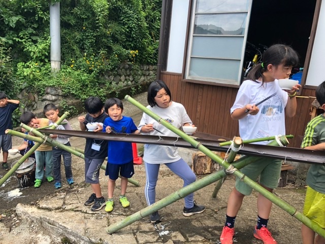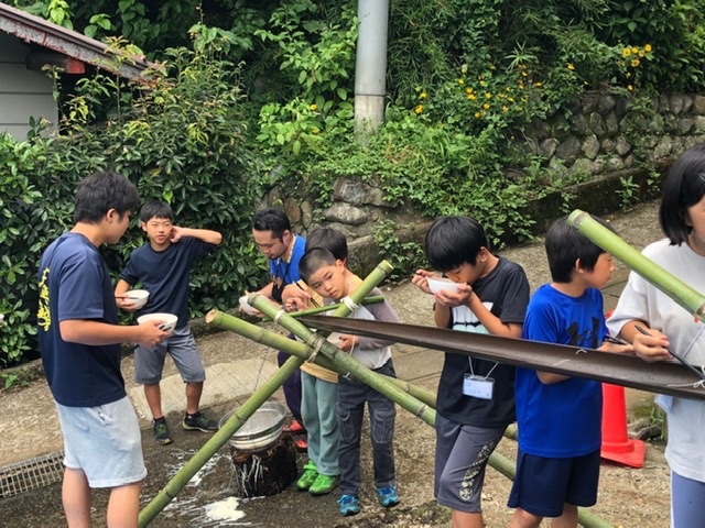 チャレンジ2クールメンバー最後の食事は、流しそうめん☆