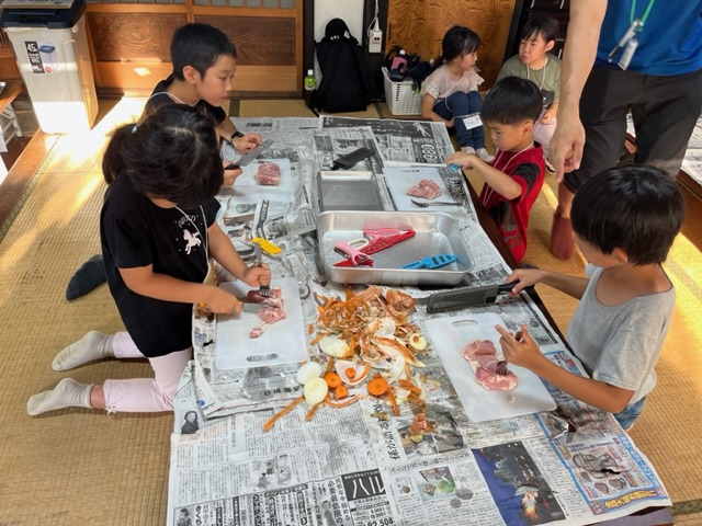 野菜とお肉を切る班、お米炊きとカレーを調理する班に分かれて進めました^ ^