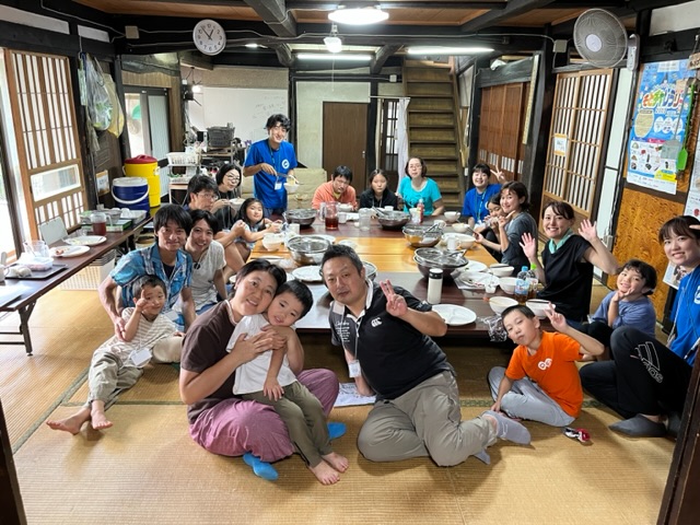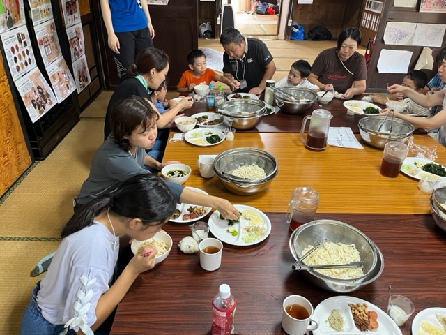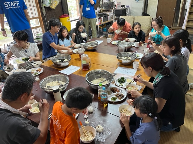ファミリーキャンプメンバーは、普段子どもキャンプで食べるスタッフの手打ちうどんをお昼ごはんに食べました。