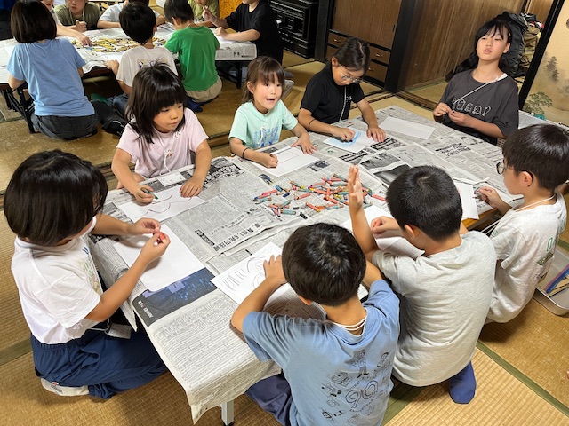 ベーシックコースメンバーは、キャンプの思い出作品作りとしてフィンガーペイントを行いました^ ^