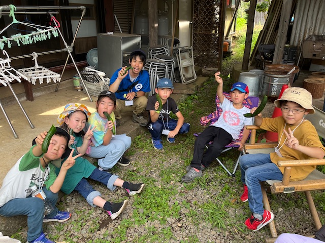 フリーチョイス前はみんなで畑に行ってきゅうりの収穫☆