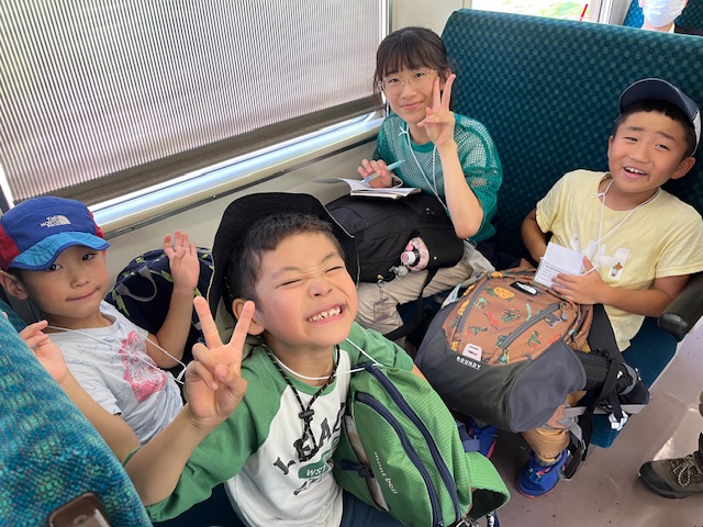 子どもたちは電車の中から元気いっぱいです\(^o^)/
