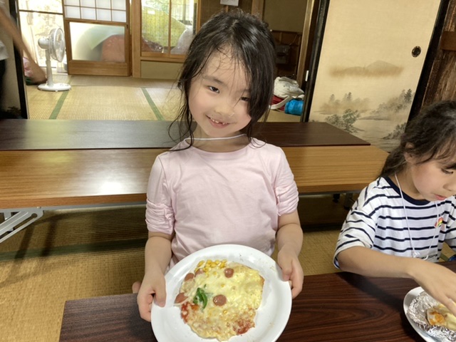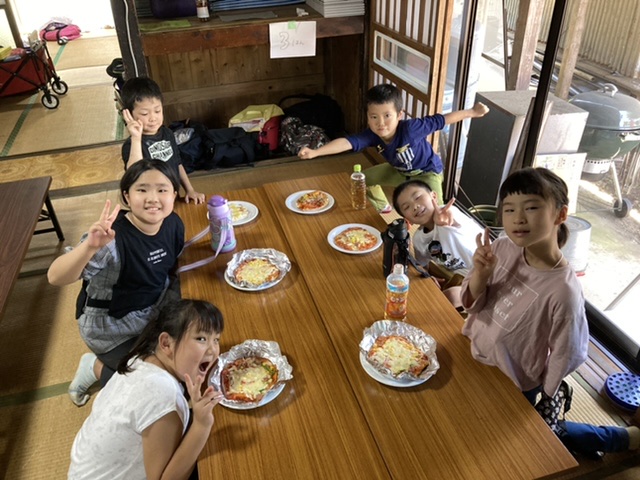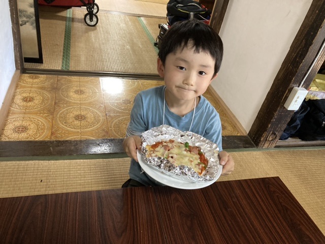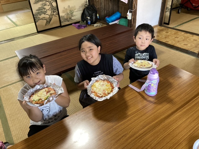 古民家に戻って昨日仕込んだピザを仕上げお昼ご飯に食べました!