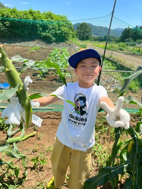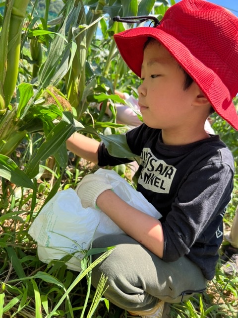 トウモロコシときゅうりを収穫させていただき、みんな大満足^ ^