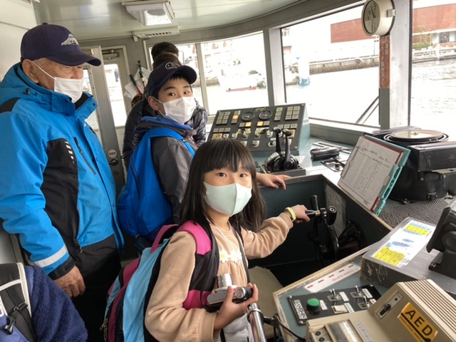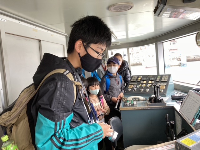 特別プログラムの操舵室見学でも子どもたちは大興奮。