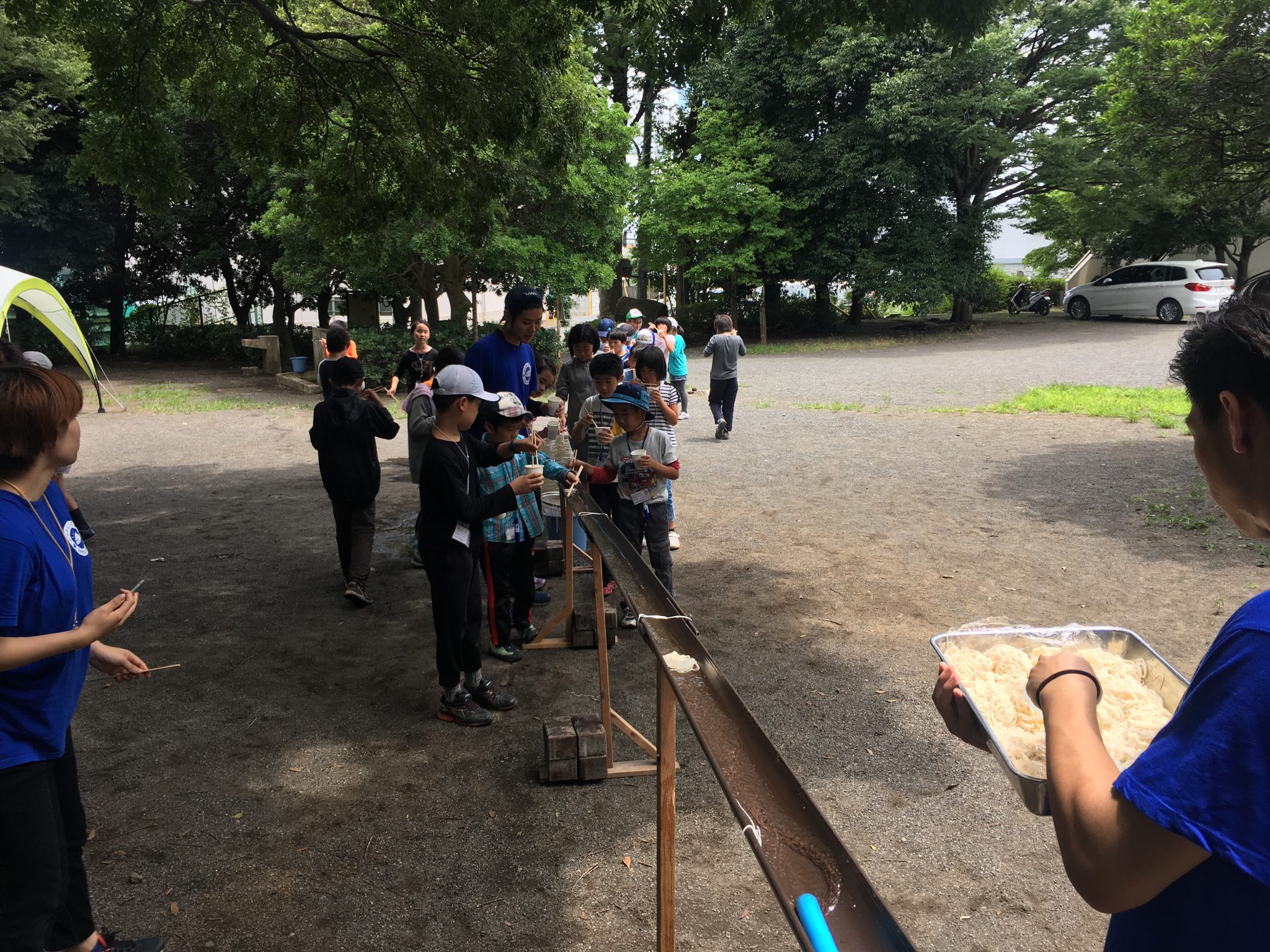 夏のサイエンスキャンプの一行は、炎のプレイパークを満喫し、お昼ご飯をいただきました。プレイパーク中も焚火でパンケーキや焼きマシュマロを作って食べていたのに、ソーメンも6キロ近く消費。おみごと! 片付けや流しソーメン台の設置など、生活のお仕事もとてもよく頑張っています。やりたいことに満たされた子どもたちの底力を感じています。