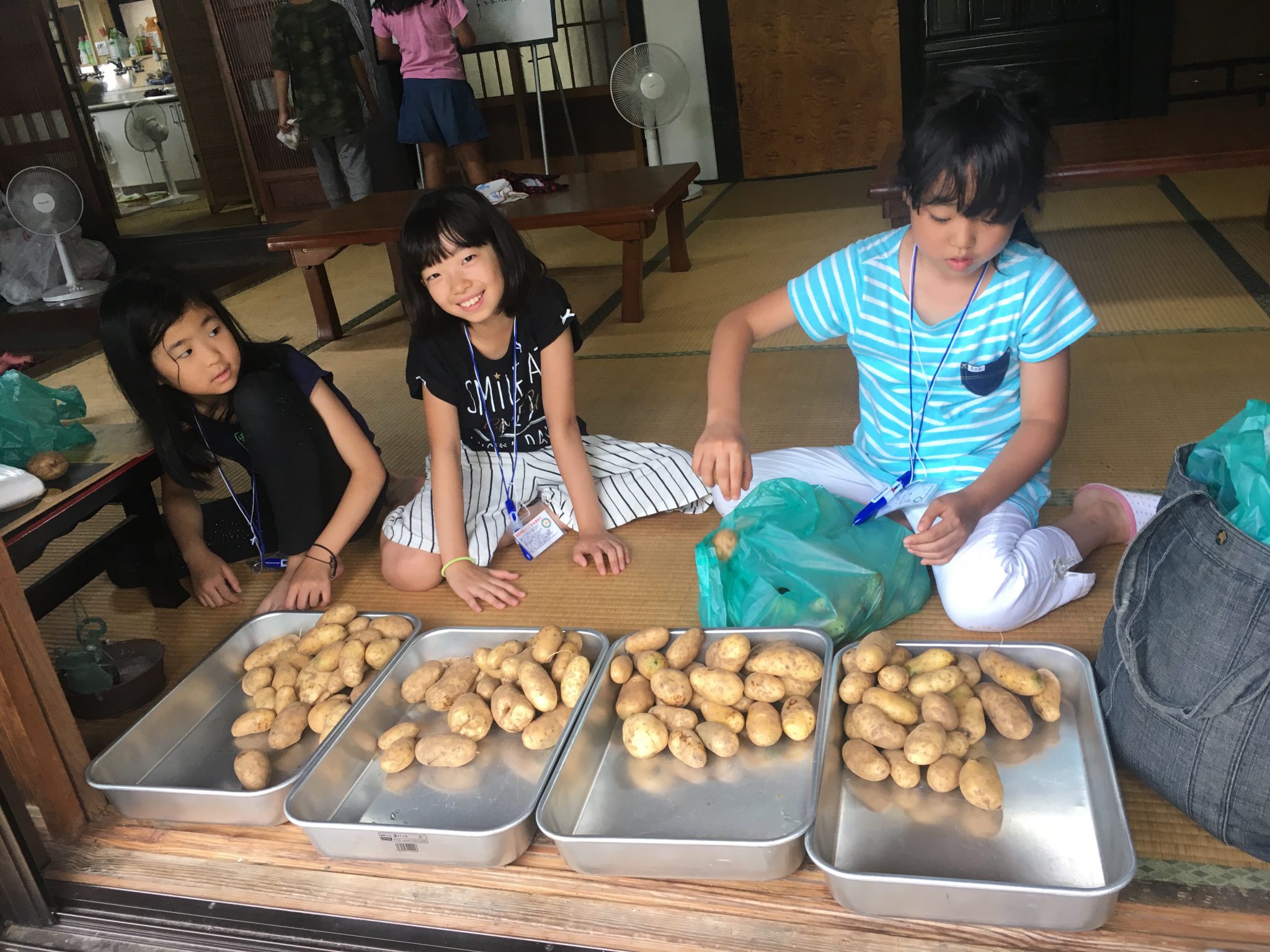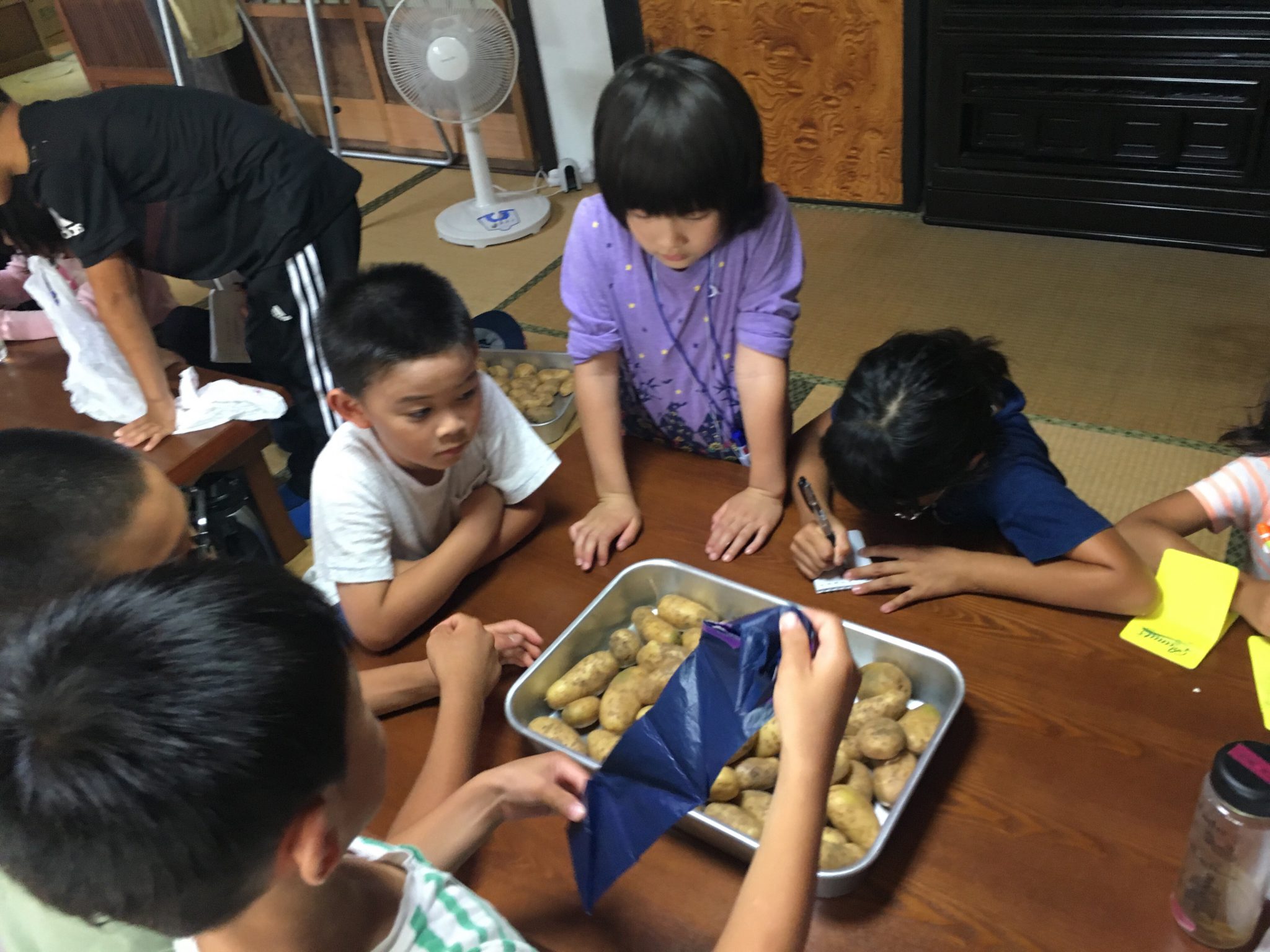 大月山村留学キャンプの一行は、荷物の準備、落し物戻し大会を終え、最後の昼食 ほうとう を作りました。自分たちで麺を打ち、豚肉入りの特製味噌汁で煮ました。昨日収穫したジャガイモをみんなで山分けし、いよいよキャンプオーラスの雰囲気が漂って参りました。