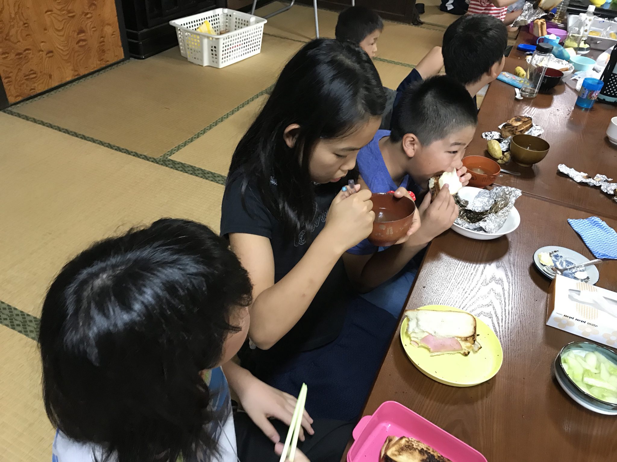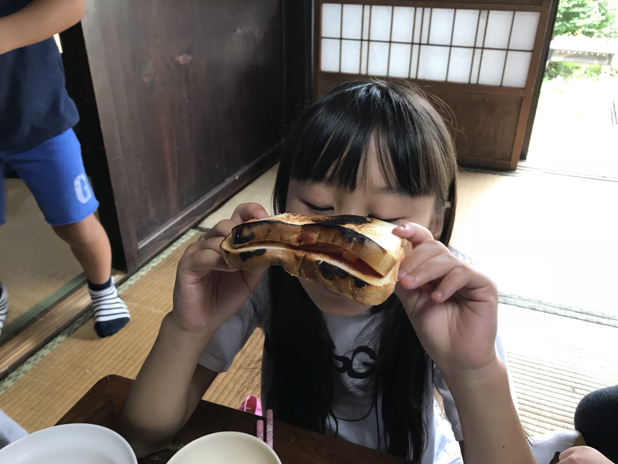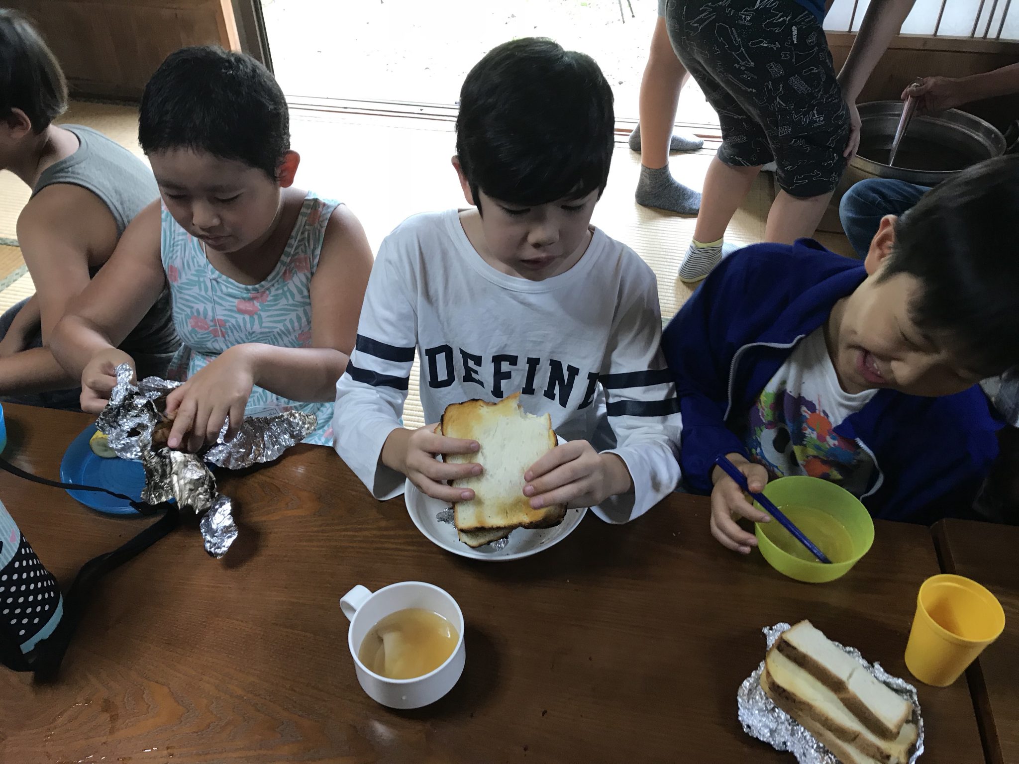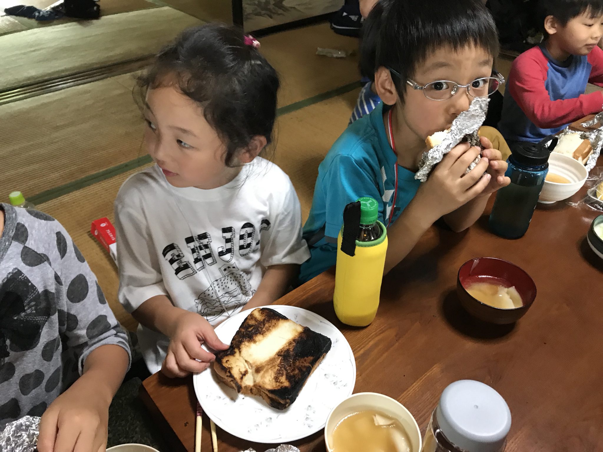 いつもあばれんぼキャンプブログをご覧いただきありがとうございます。 里山キャンプメンバーは元気に起き、2日目がスタートしました! 朝食はホットサンド! みんなで美味しくいただいています!