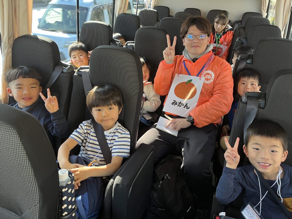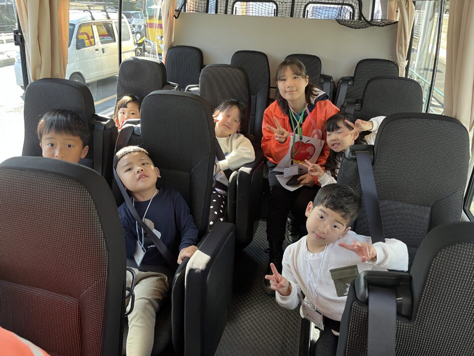 古民家に移動中のバスでは、レクをしたりお友だちと自己紹介をして過ごしています^ ^