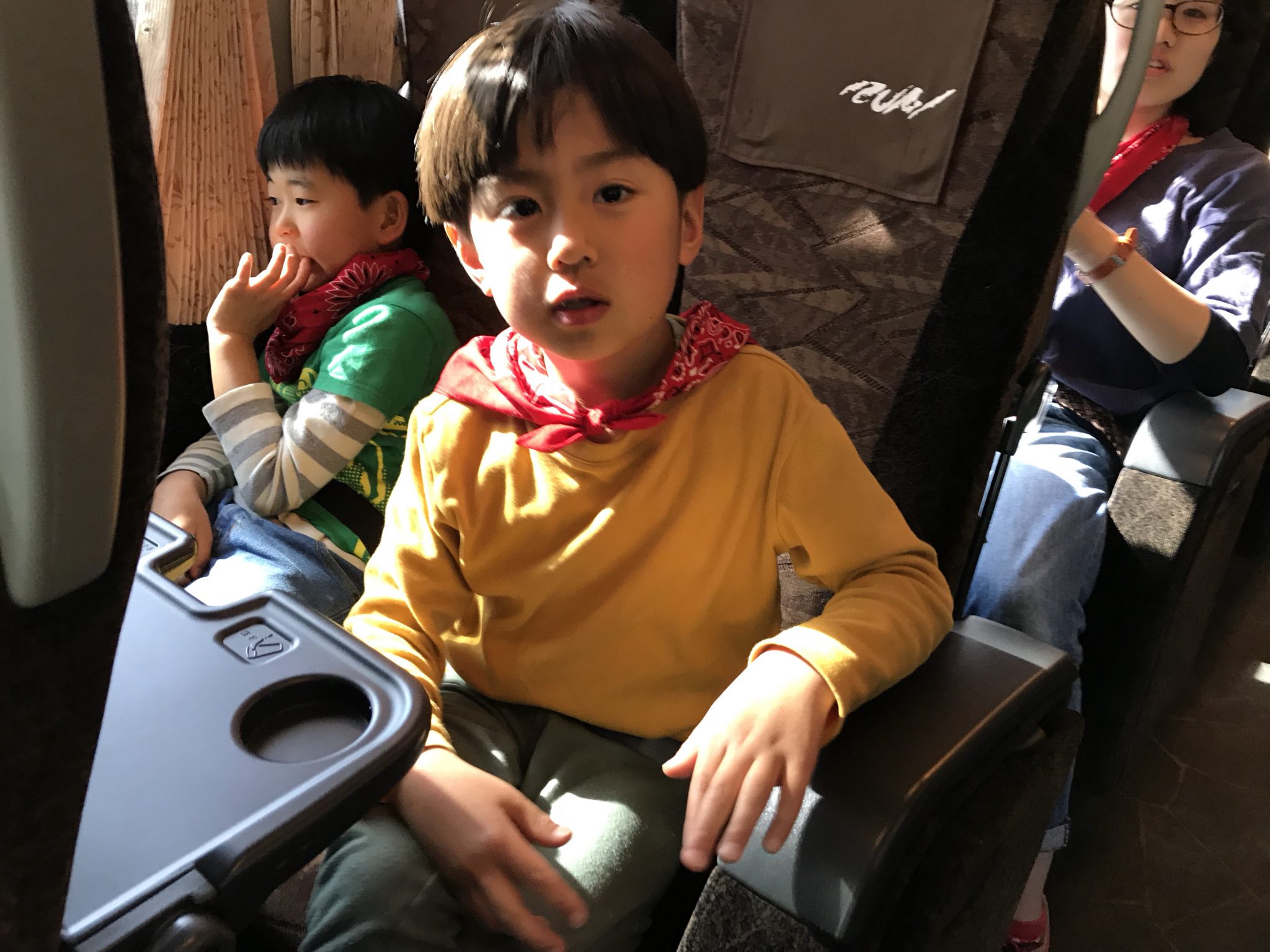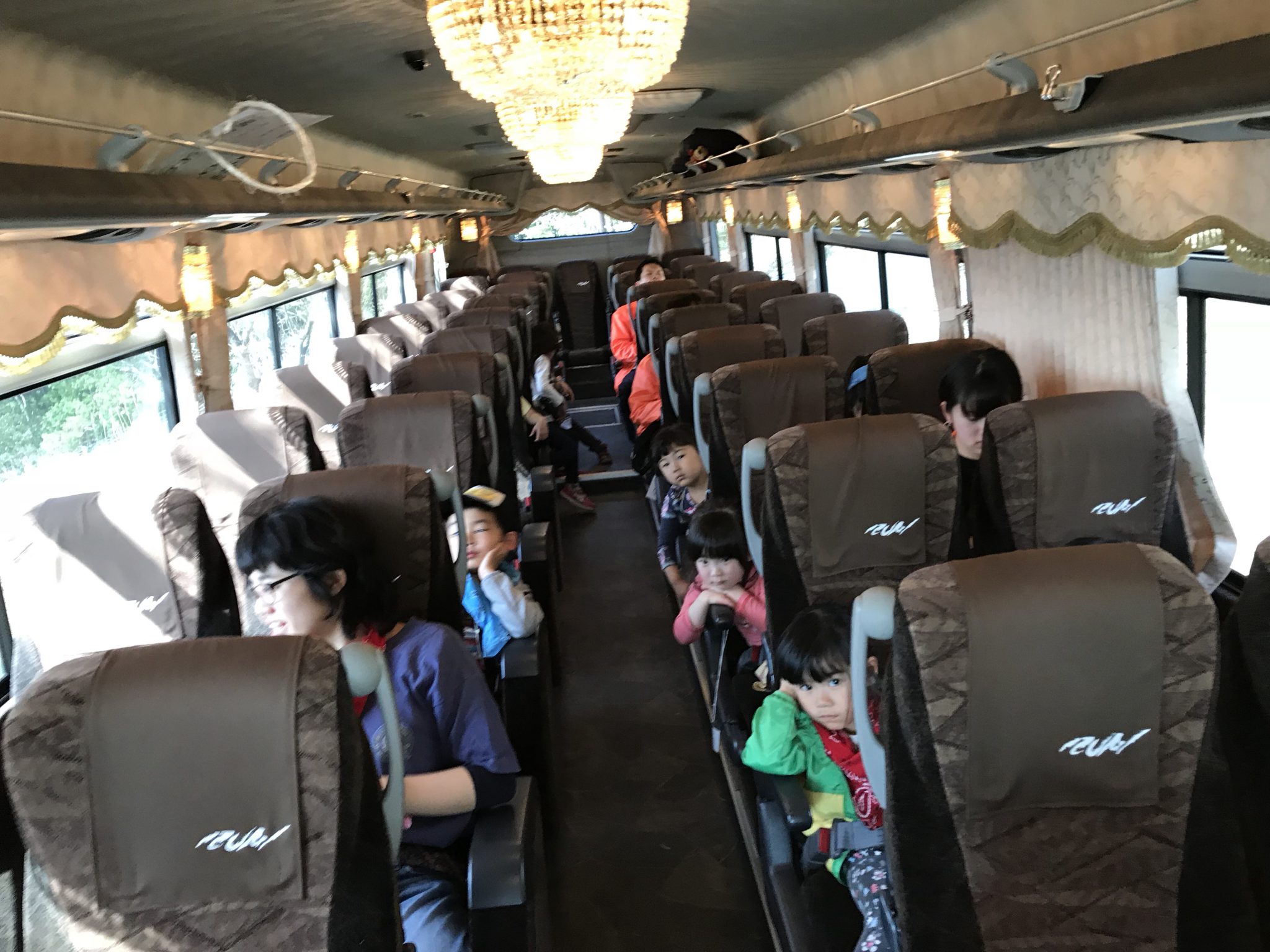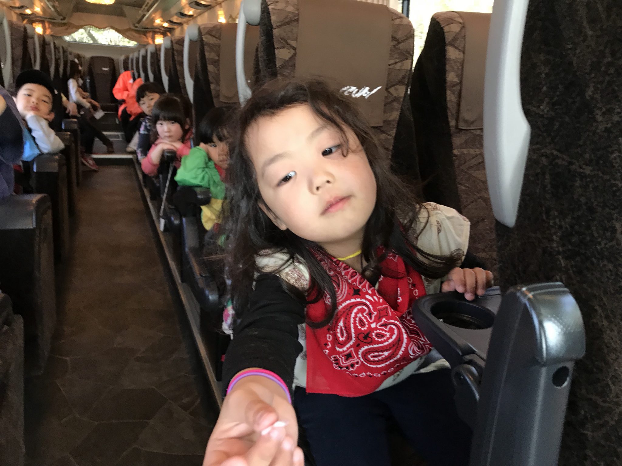 春ちびメンバーは表彰式を終えて、バスに乗り、宿舎を出発しました! 帰りはDVDを見ながら帰ります。