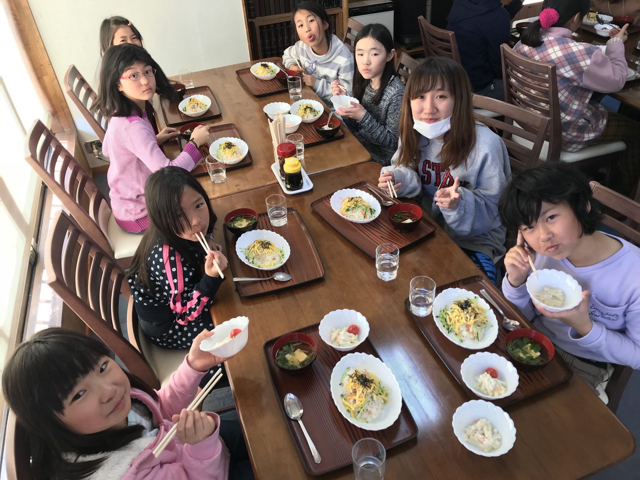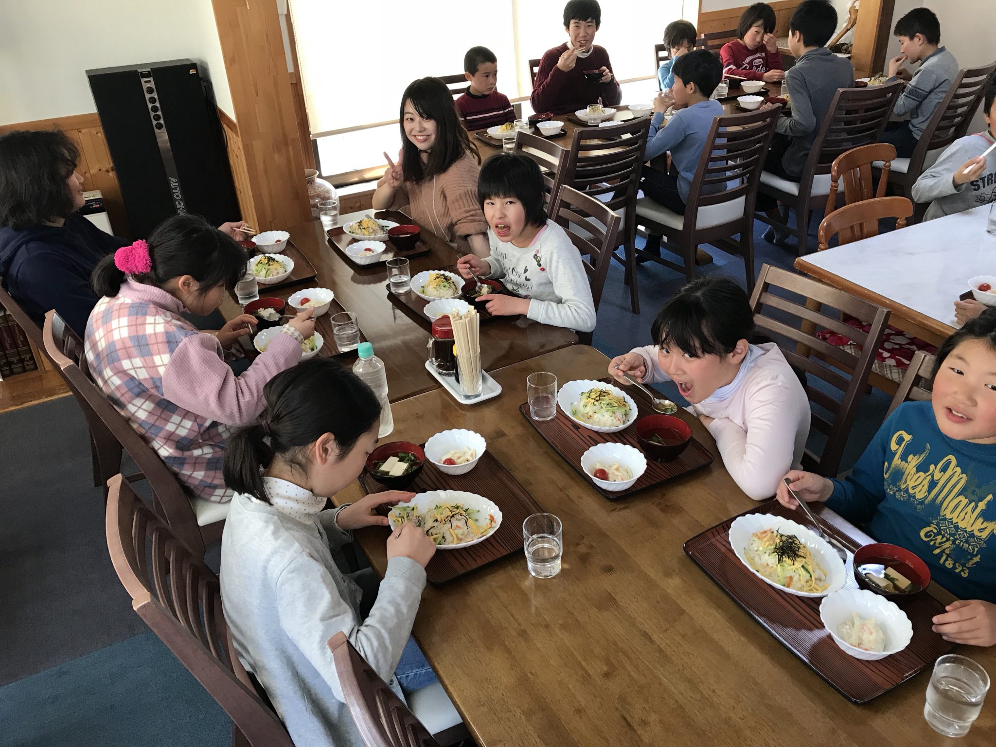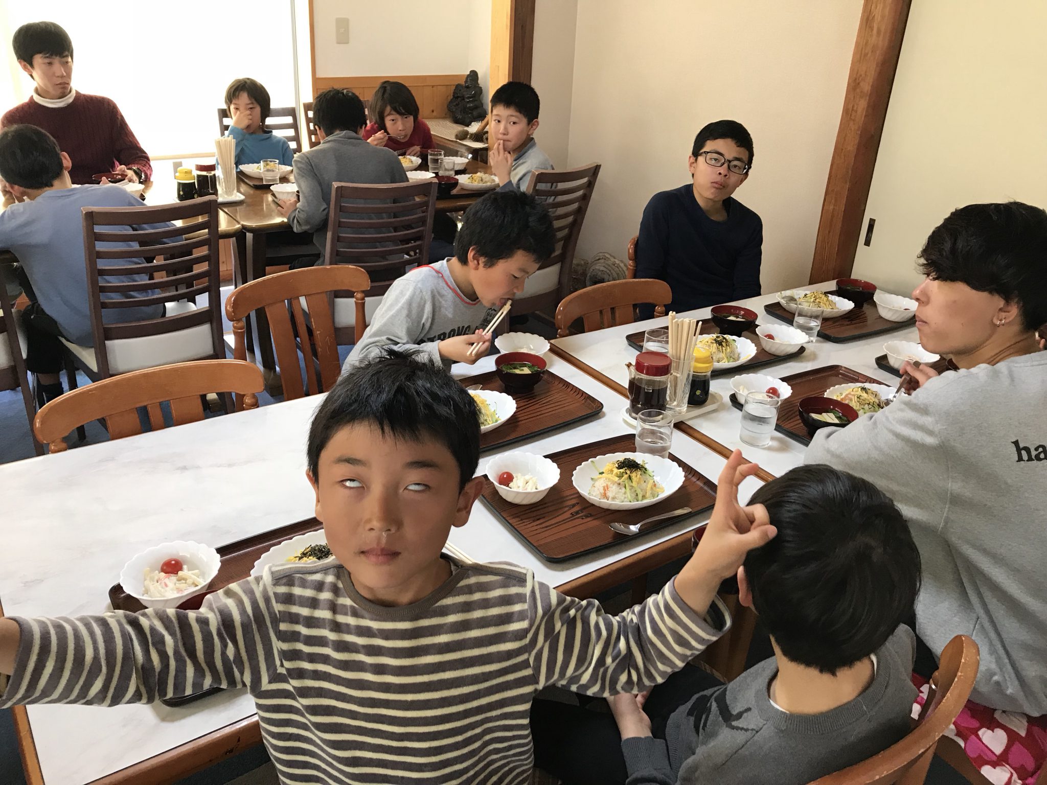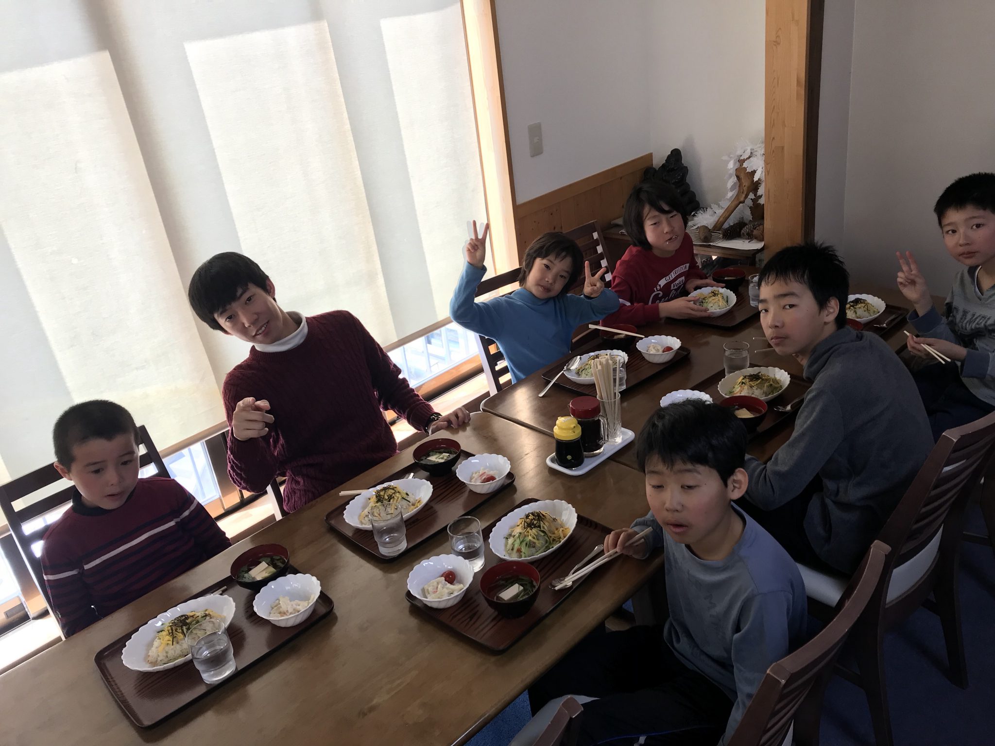 春スキーメンバーは、午前のスキーを楽しみました! お昼ご飯をたくさん食べています。