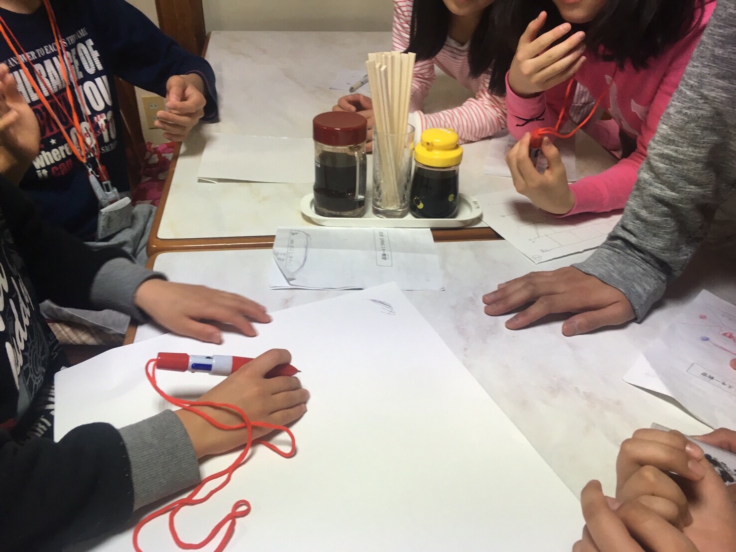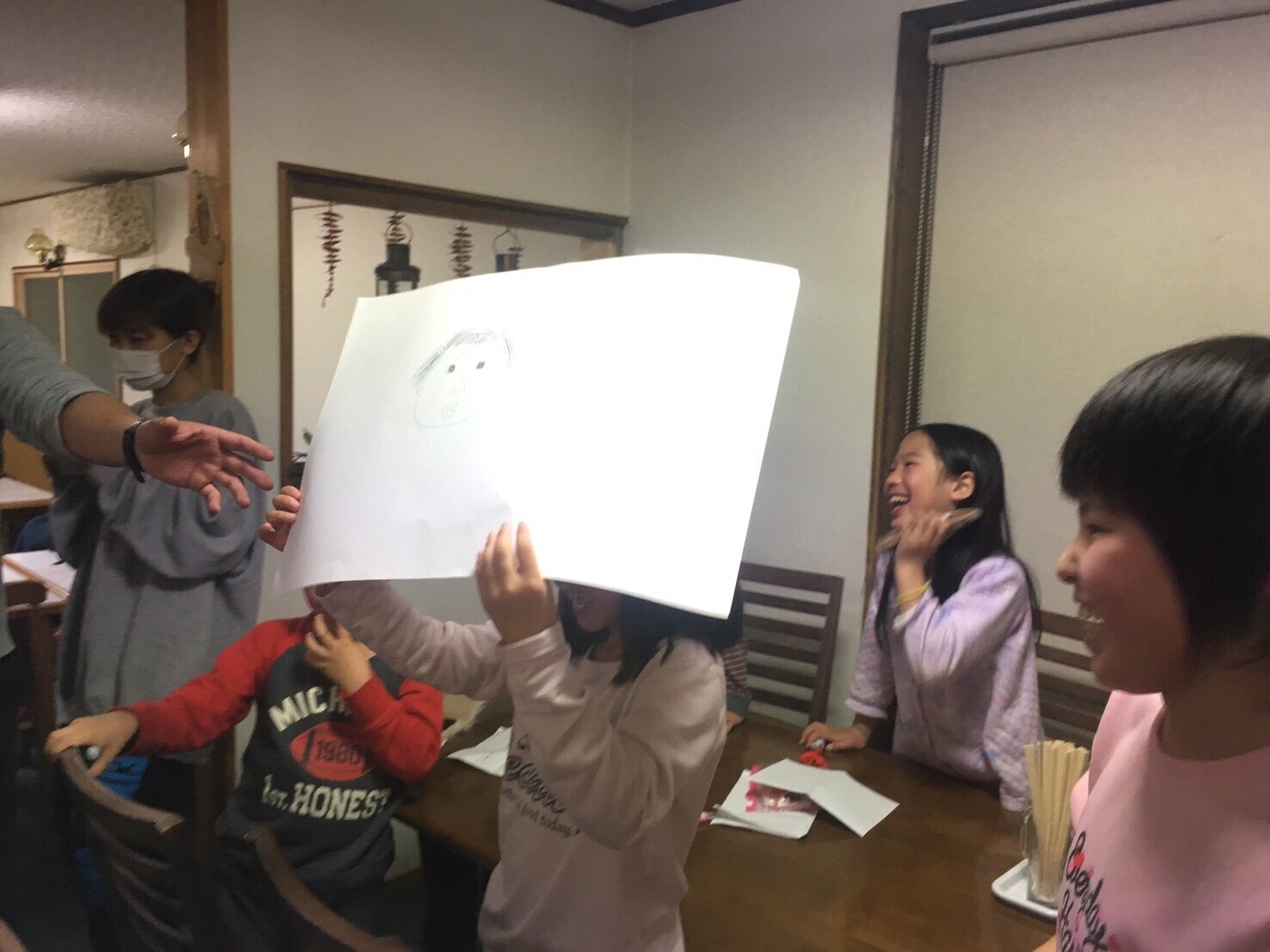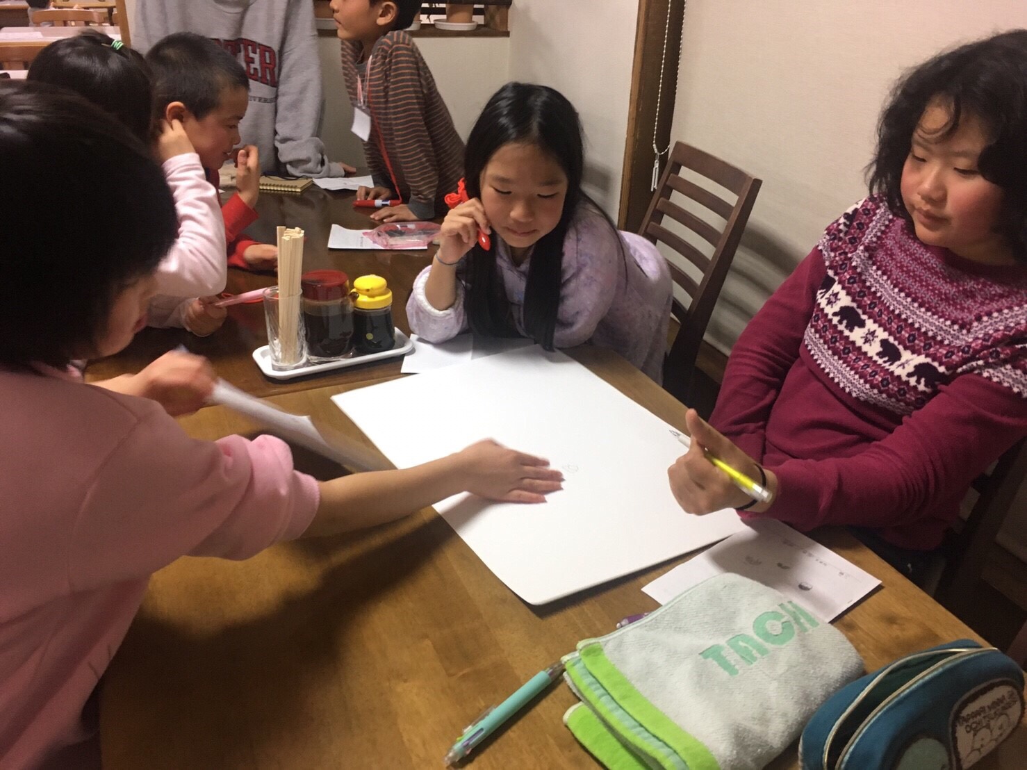 春スキーメンバーは、就寝前の自由時間を過ごしています。 男女仲良く、班も超えて盛り上がっています。 たくさん滑ったのにみんな元気です。