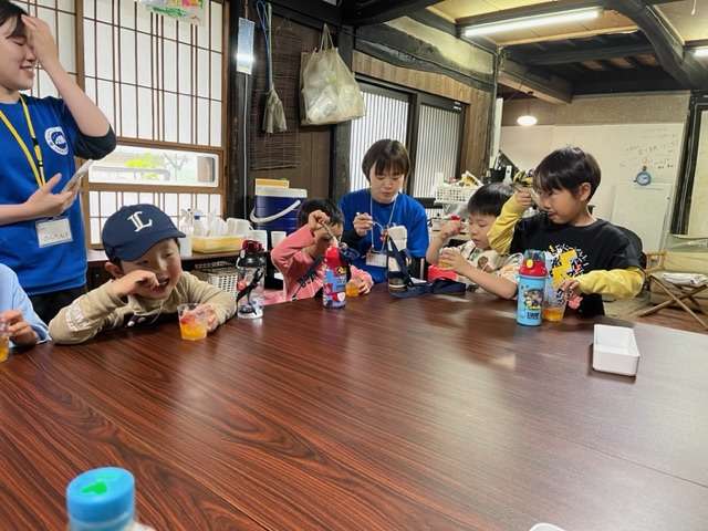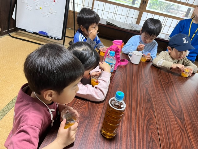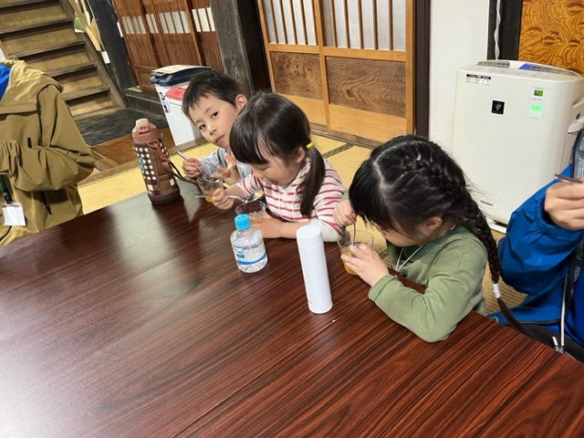 森のようちえんメンバーは、おやつを食べて古民家を出発しました。