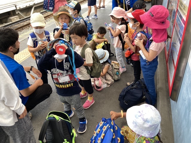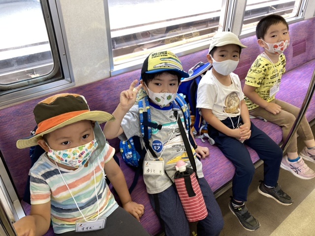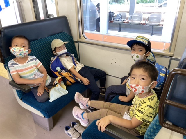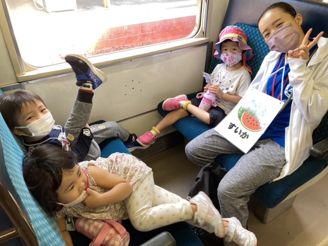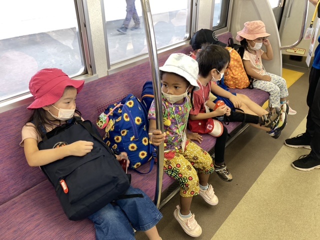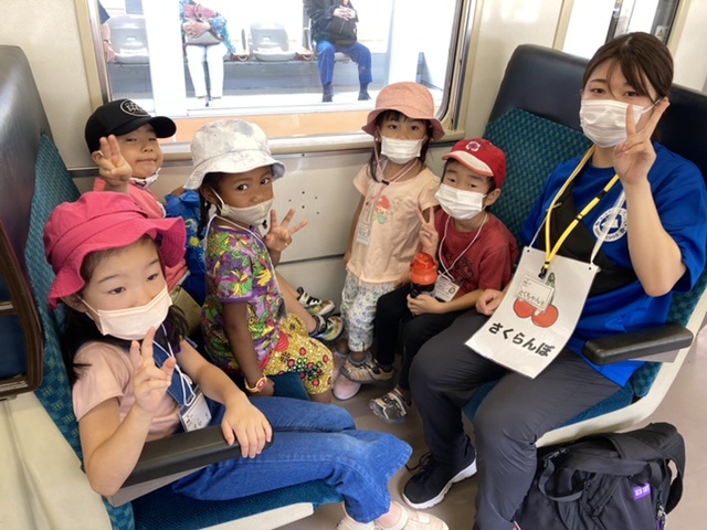 子どもたちは元気いっぱい!何をして遊ぶか電車の中からわくわくが止まらないようすです!