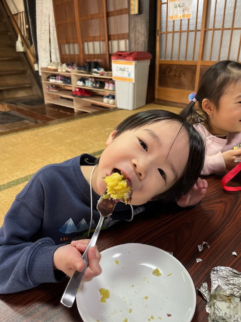 森のようちえんメンバーが準備した焼き芋はとっても美味しく出来上がりました^ ^