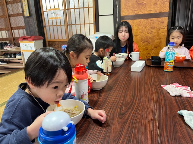 森のようちえんメンバーは、お昼ご飯にあったか〜いちゃんぽんうどんを食べました☆