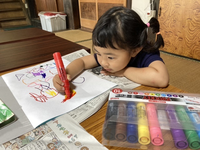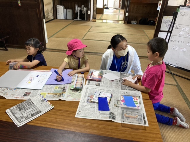 虫や植物を探す子、お絵かきをしたり、古民家の探検をする子、みんな夢中になって遊んでいます。