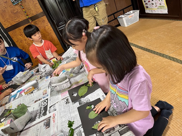 工作に使う葉っぱなので、みんな一生懸命探していました☆