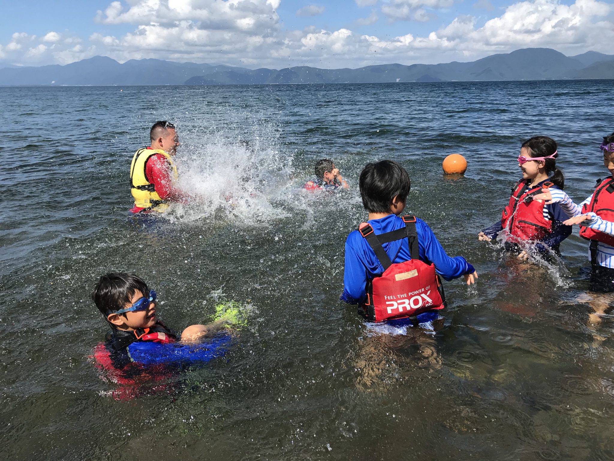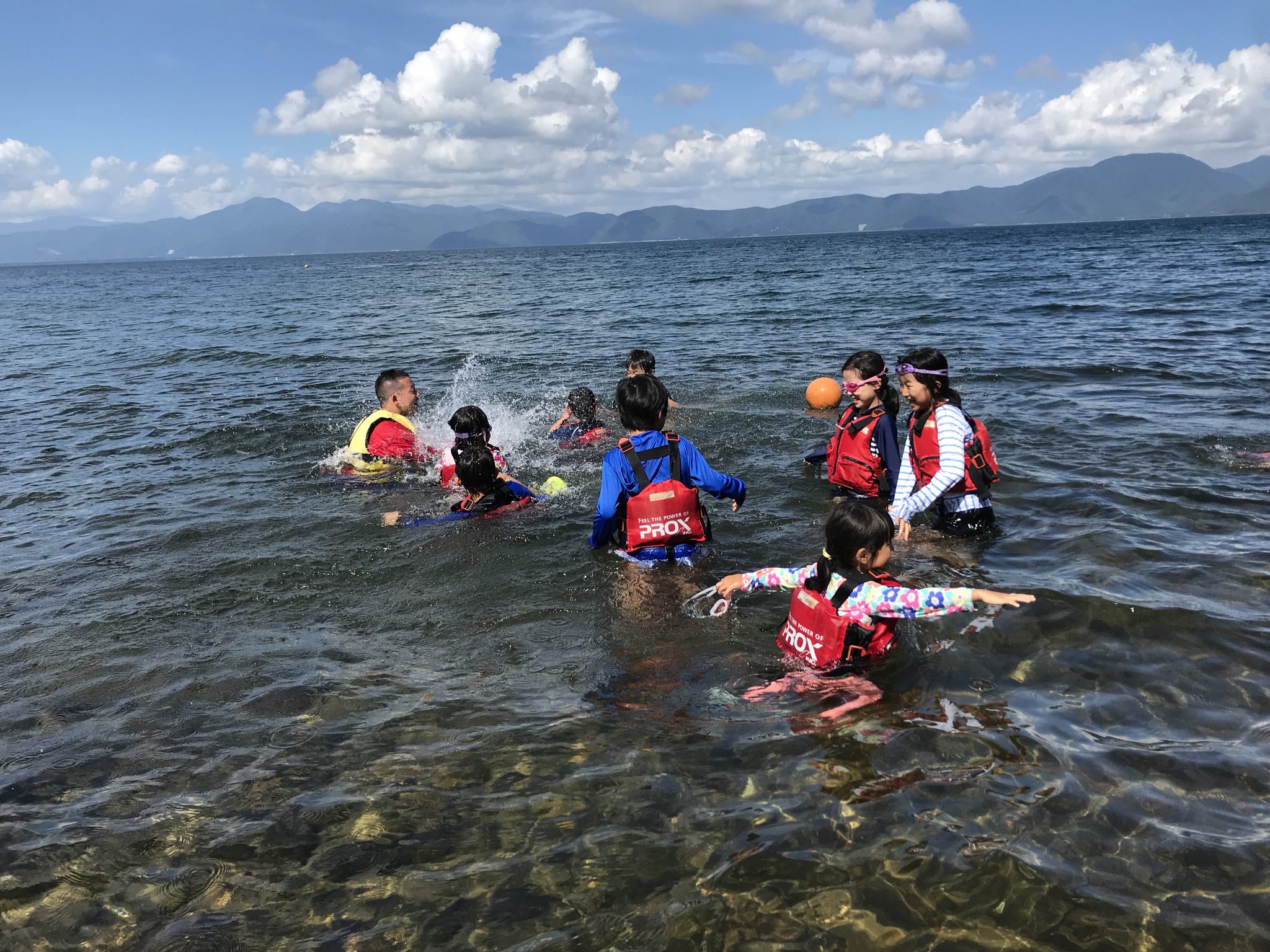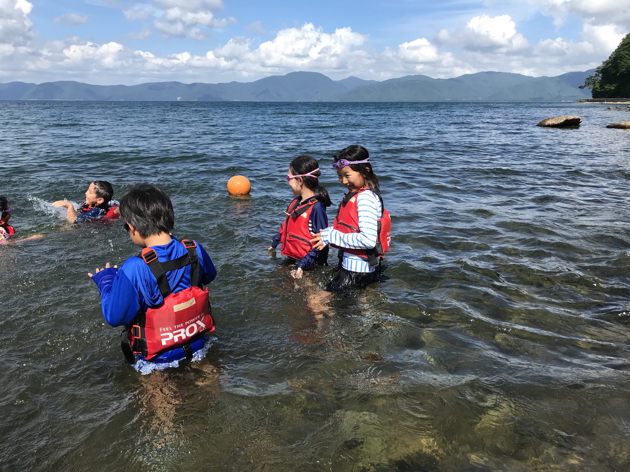 第1クールメンバーは、お昼ご飯を食べエネルギーを補給しました。 午後は湖で自由遊び! リーダーや友達と一緒に最後まで遊んでます!