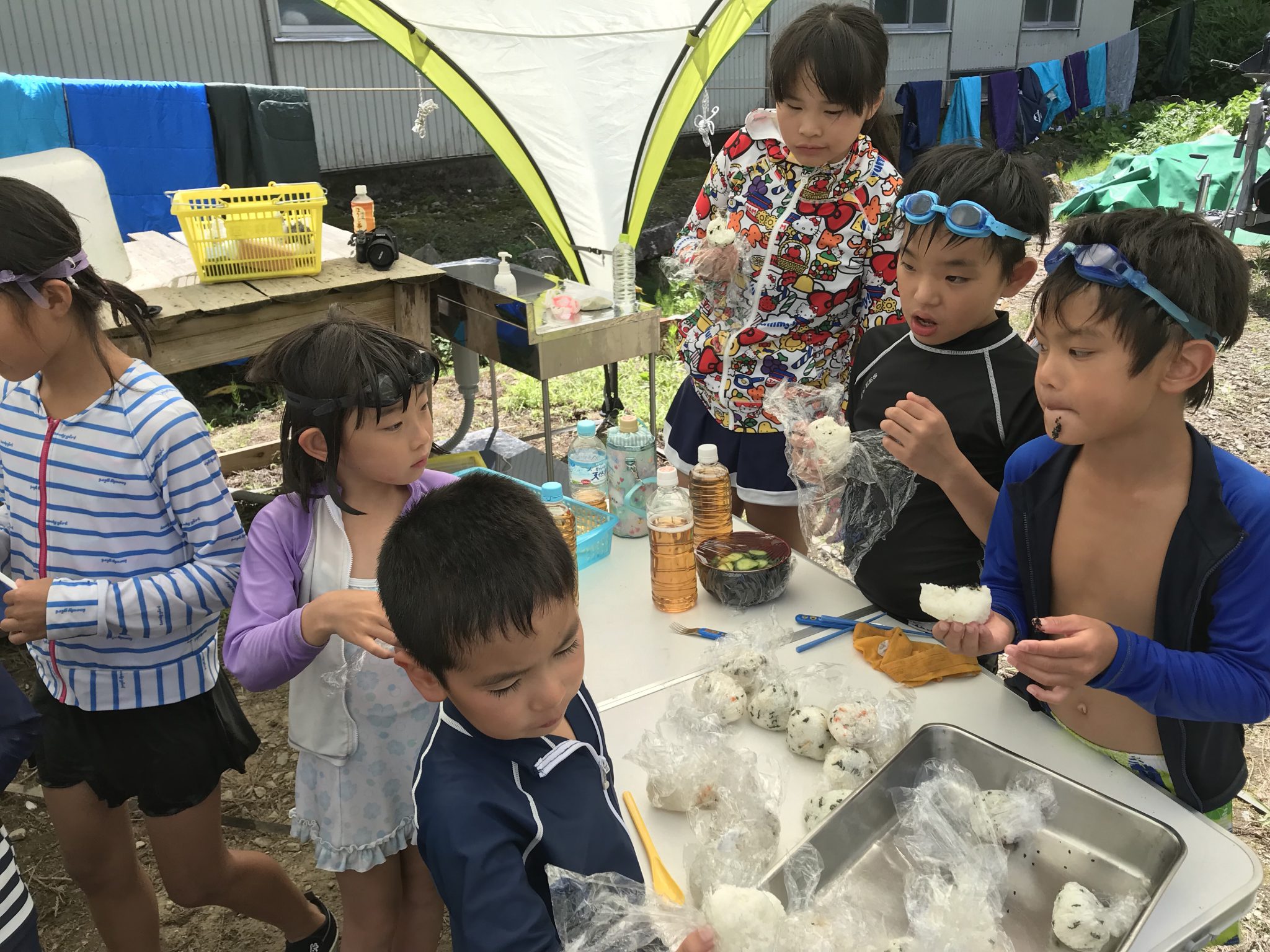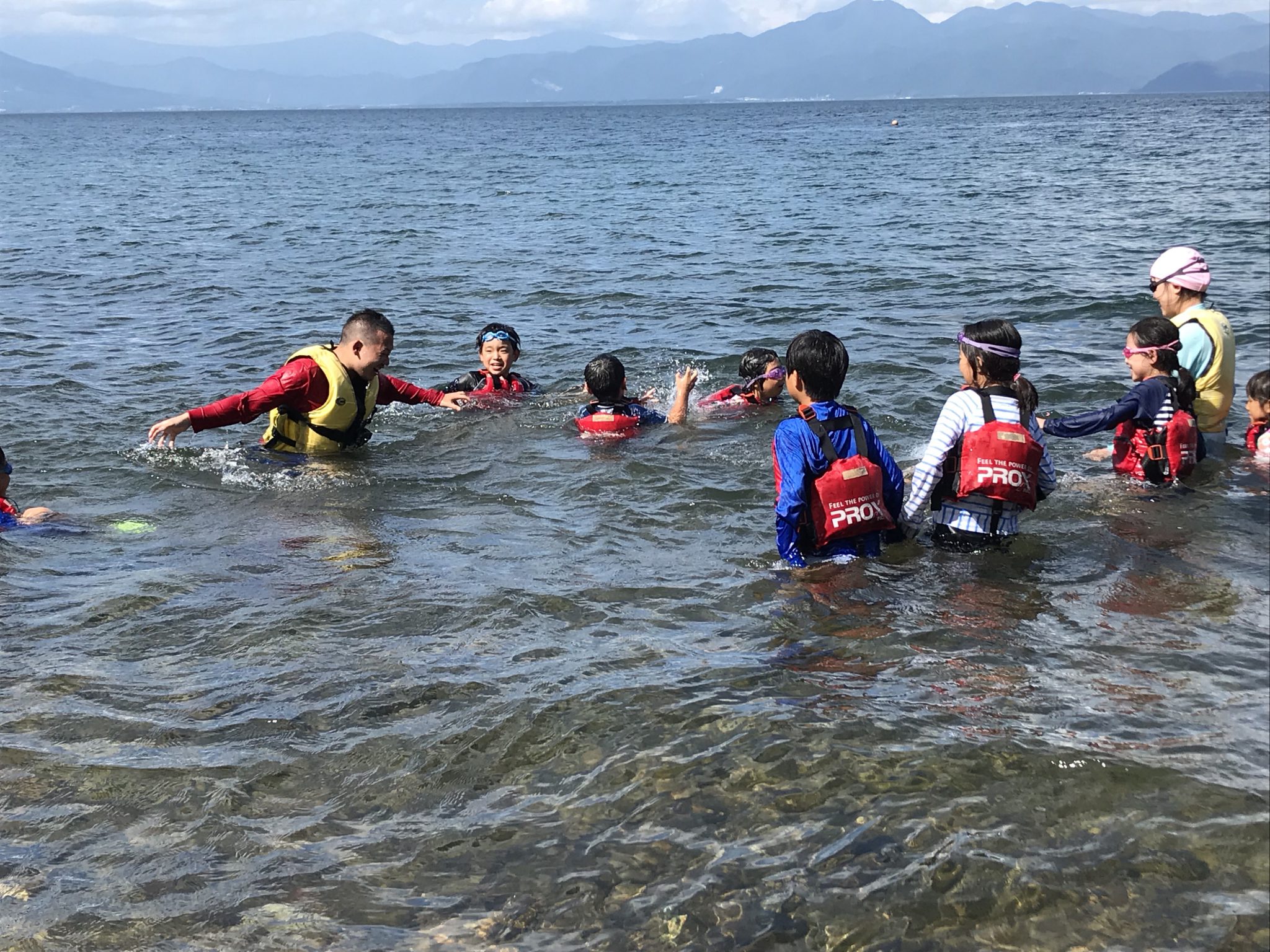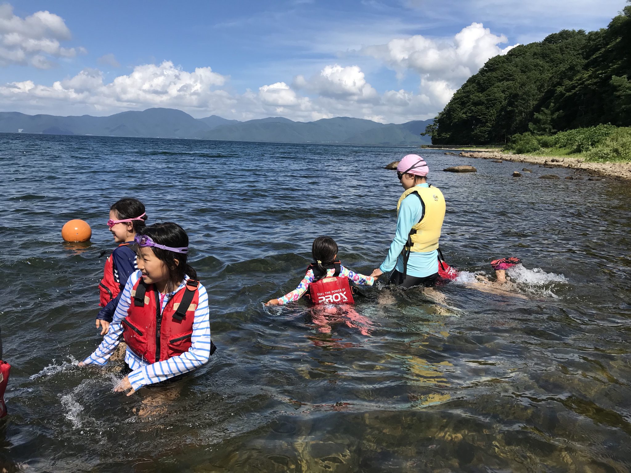 第1クールメンバーは、お昼ご飯を食べエネルギーを補給しました。 午後は湖で自由遊び! リーダーや友達と一緒に最後まで遊んでます!