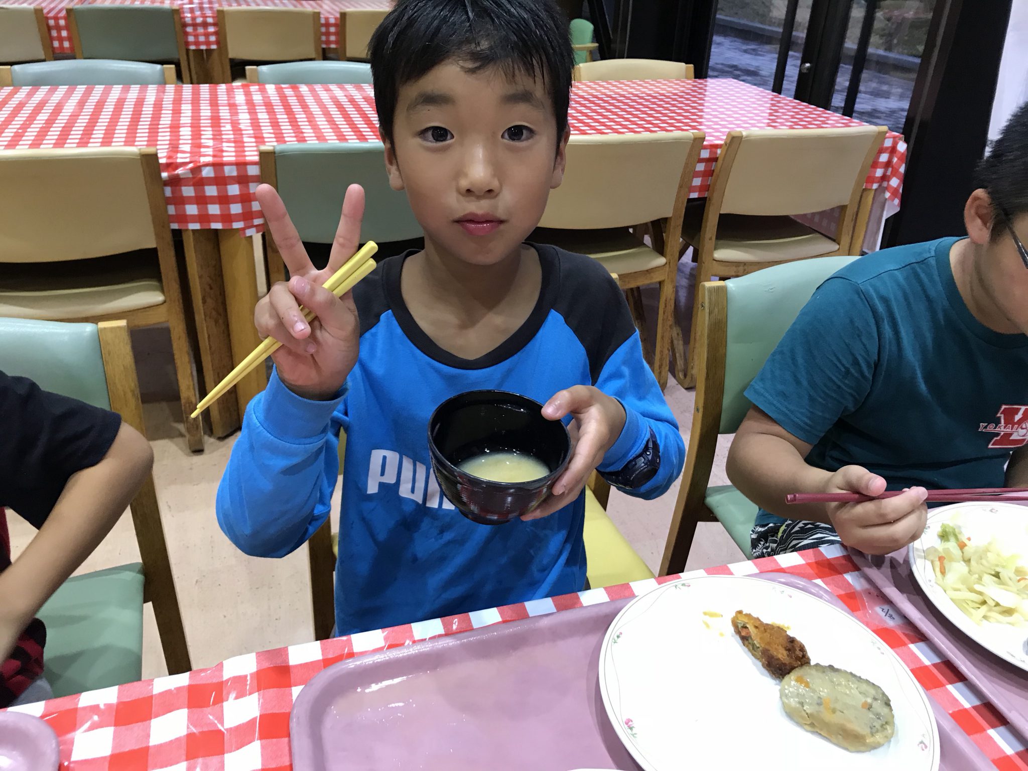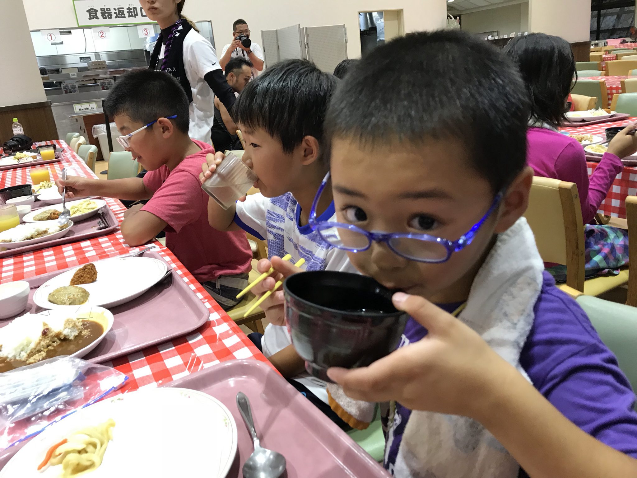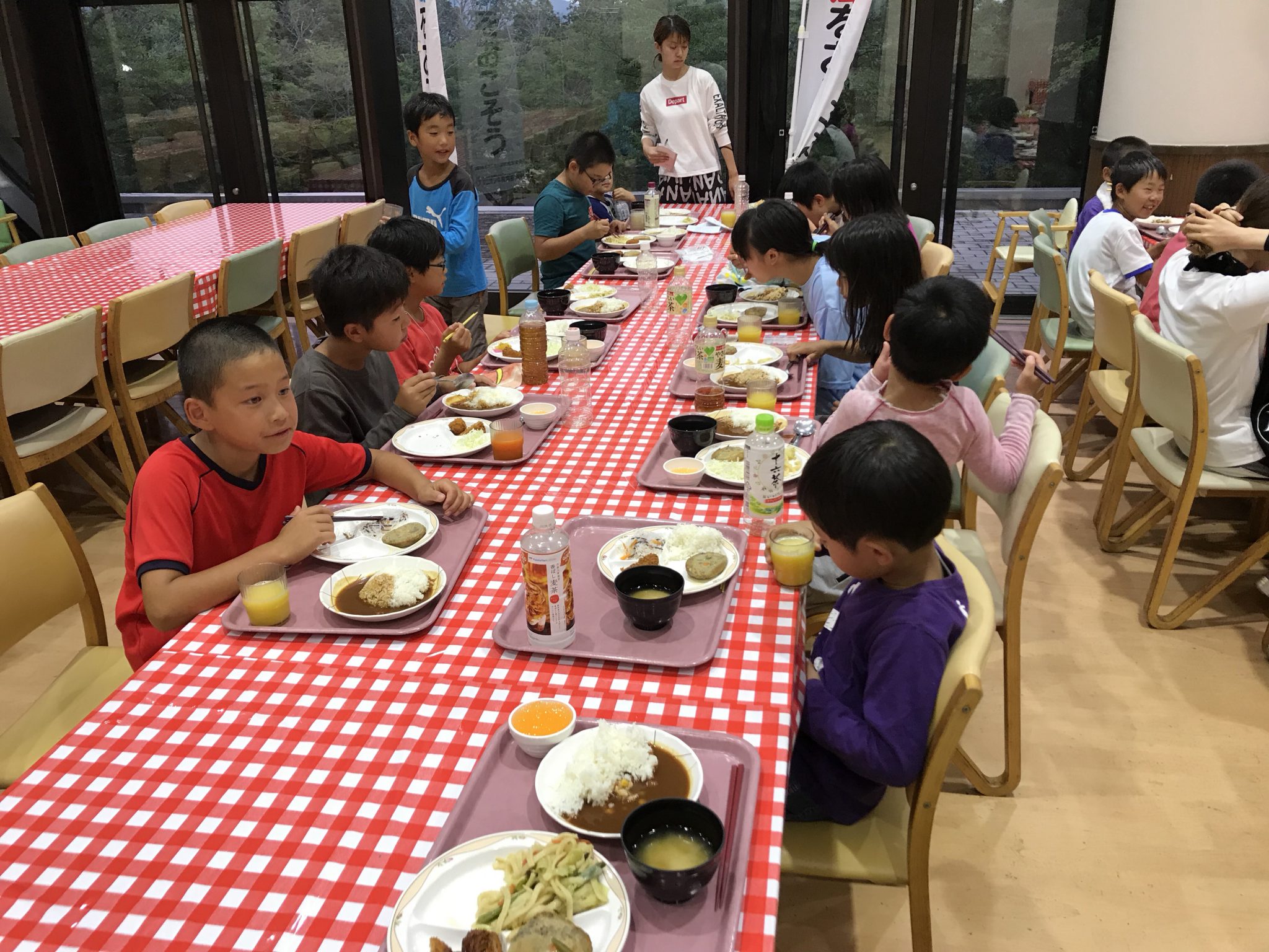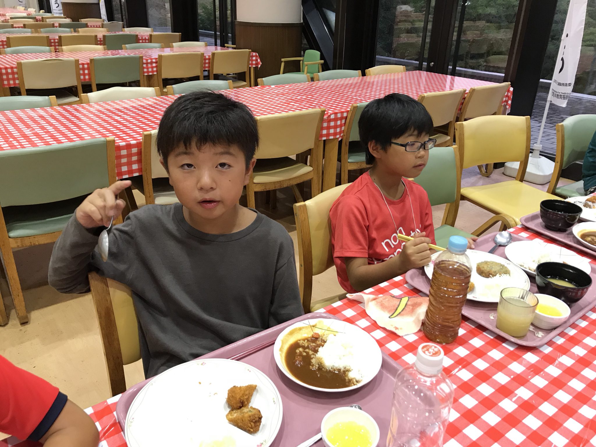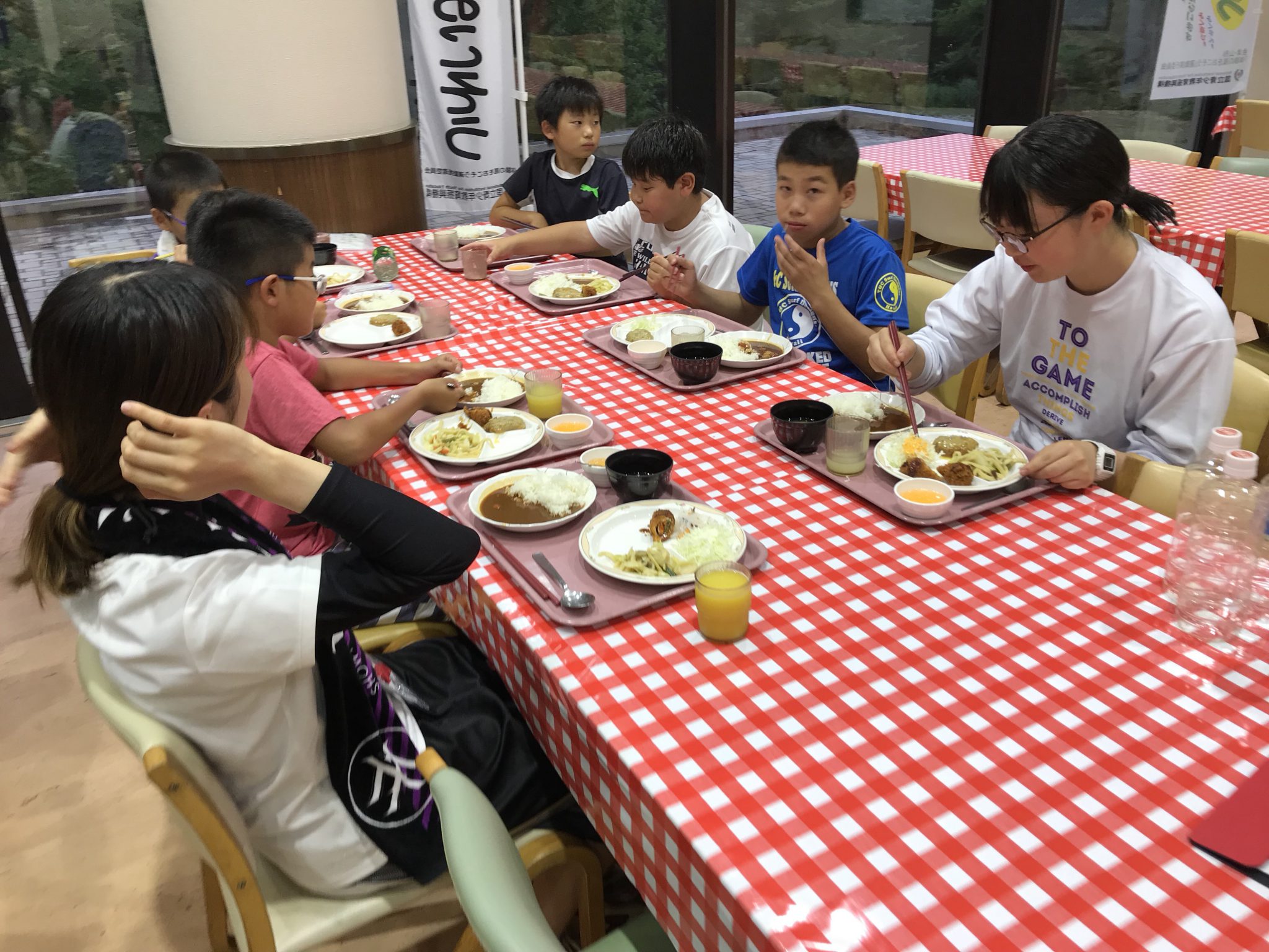 第2クールメンバーは、施設の17時からの夕べの集いに間に合うように到着しました! 頑張った汗をお風呂で洗い流し、施設のご飯を食べています。 みんな楽しく会話しながら食べています!