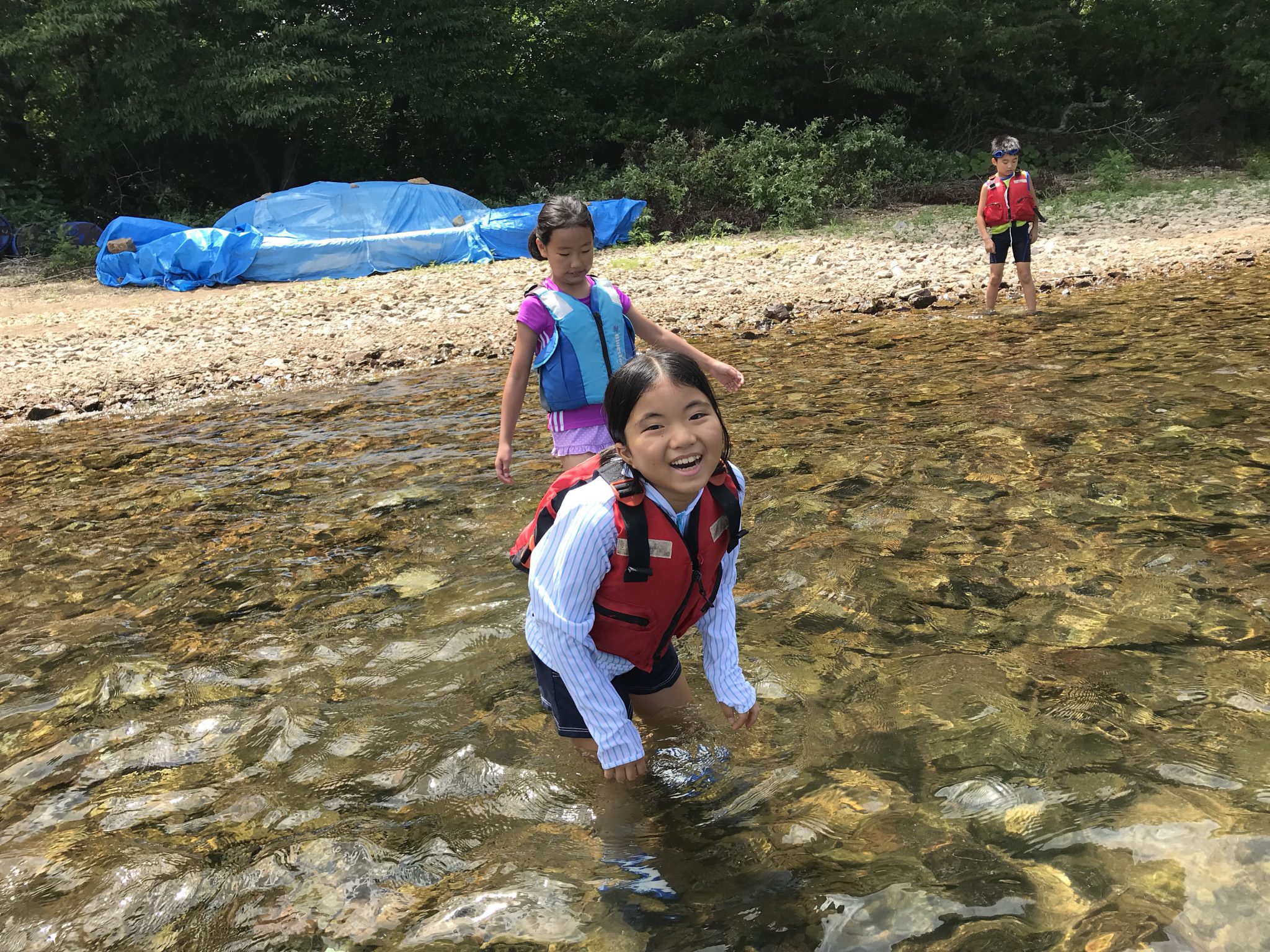 第4クールメンバーは、朝ごはんをしっかり食べ、湖遊びを始めました! 水切りもいいをしたり、友達と遊んだり、みんな元気です!
