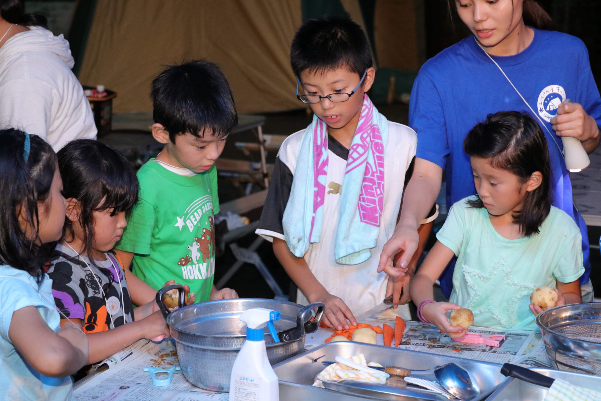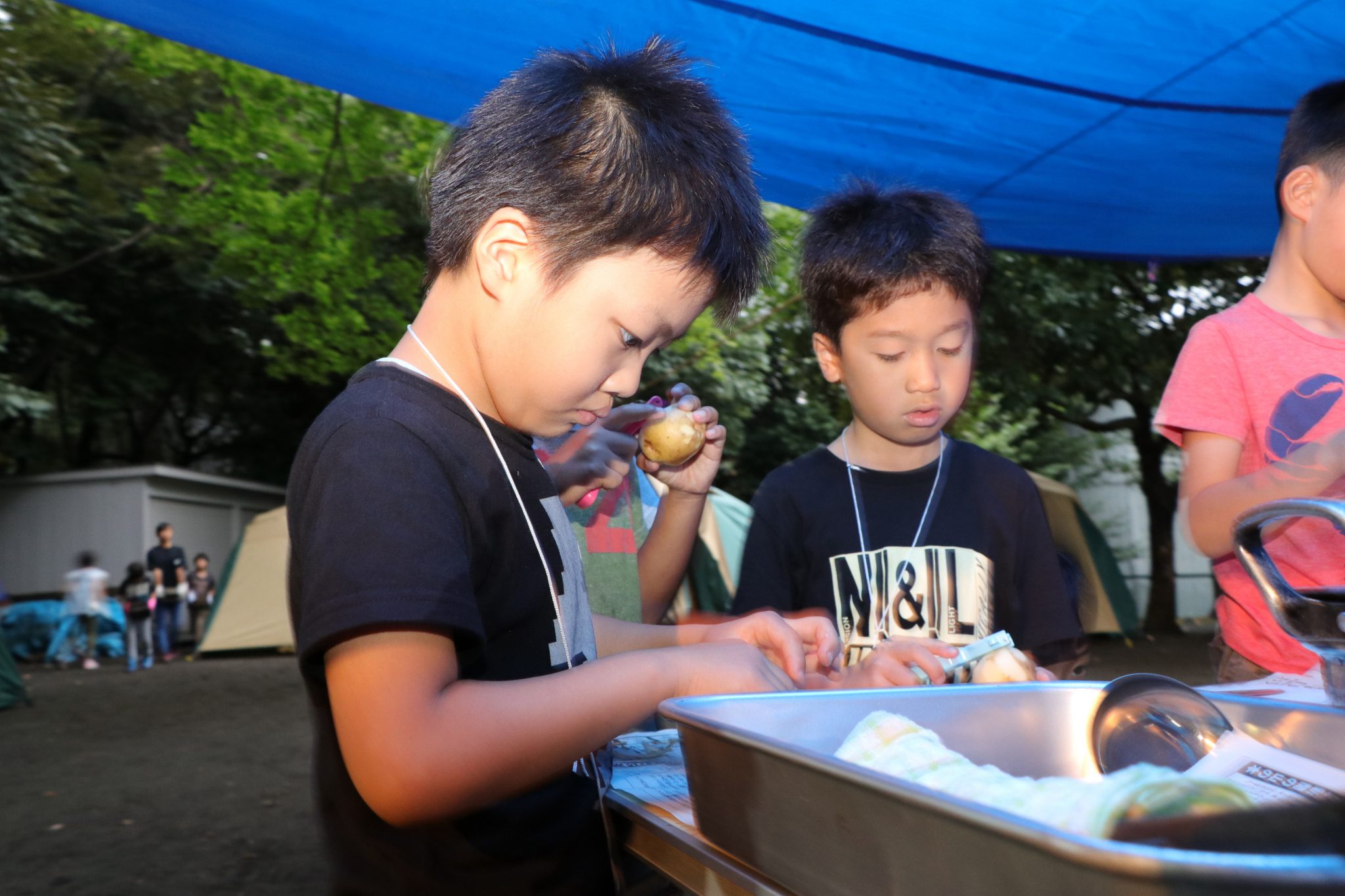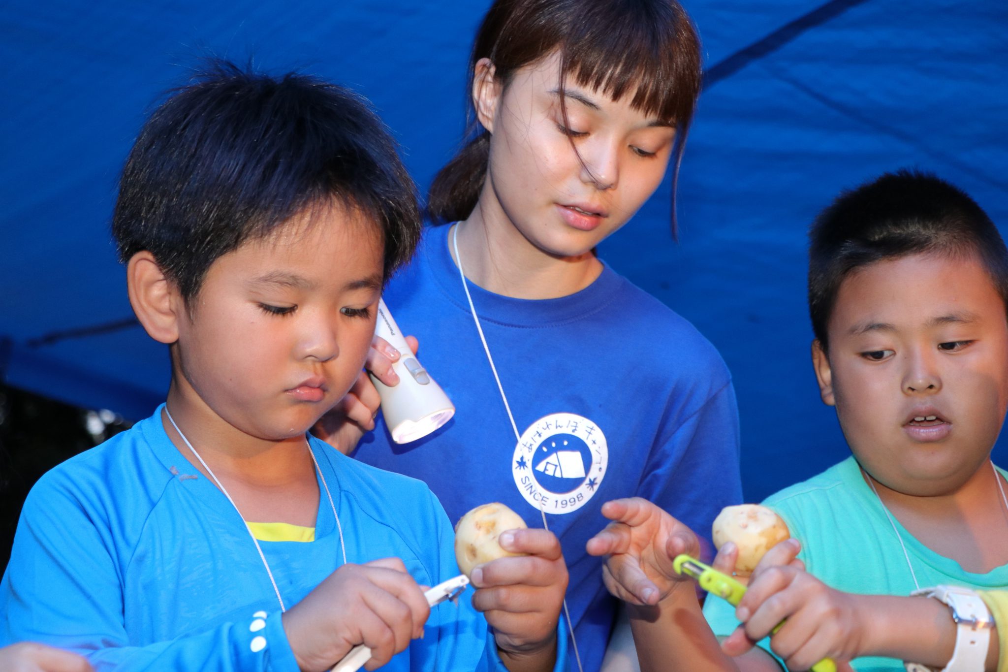 テント設営も川遊びもカレー作りもキャンプファイヤーも、子どもたちは真剣に取り組み、目一杯楽しみました。