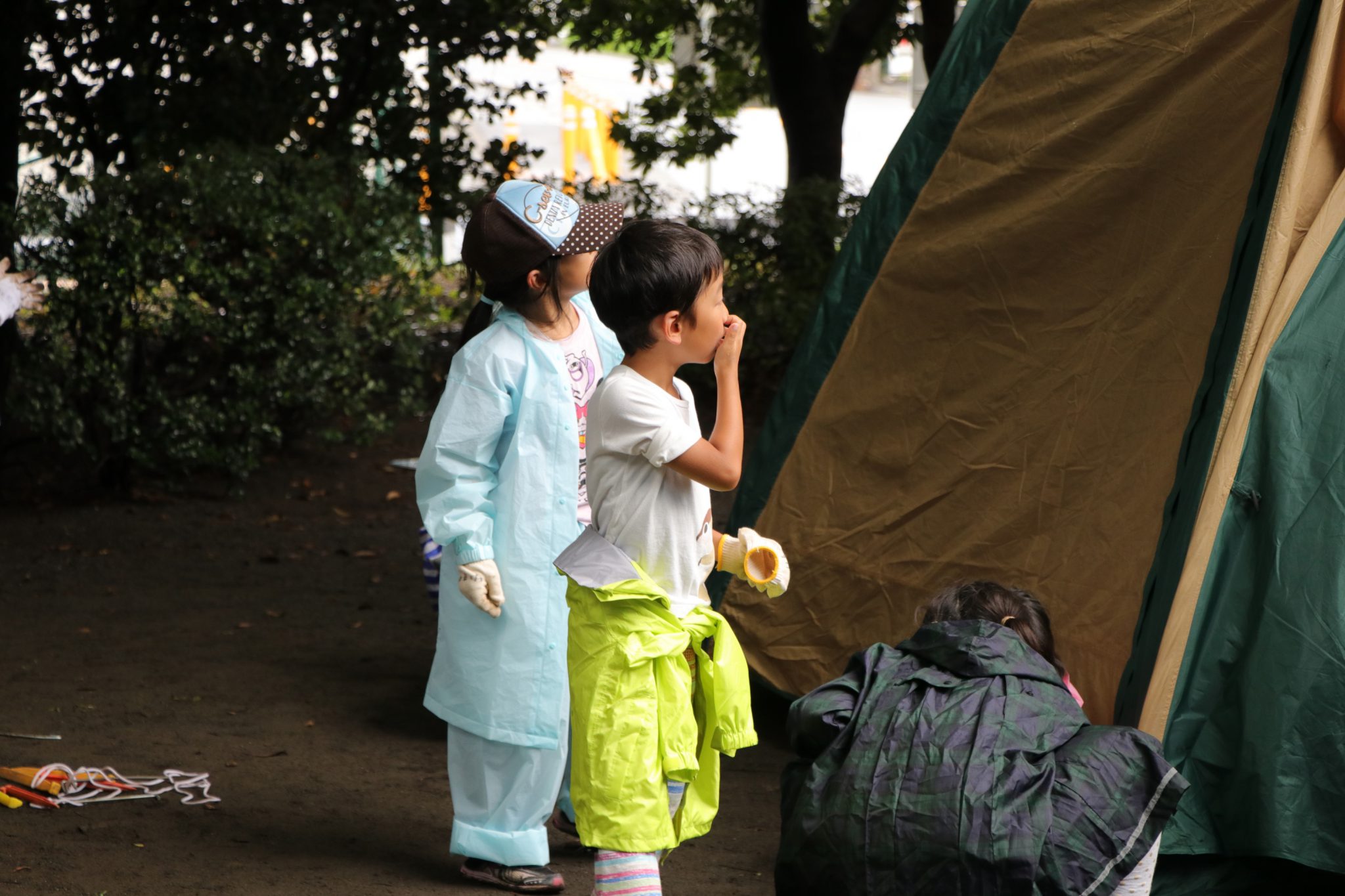 雨が降ったり止んだりを繰り返す中、子どもたちはそんなの関係ねえ!と言わんばかりに元気いっぱい。